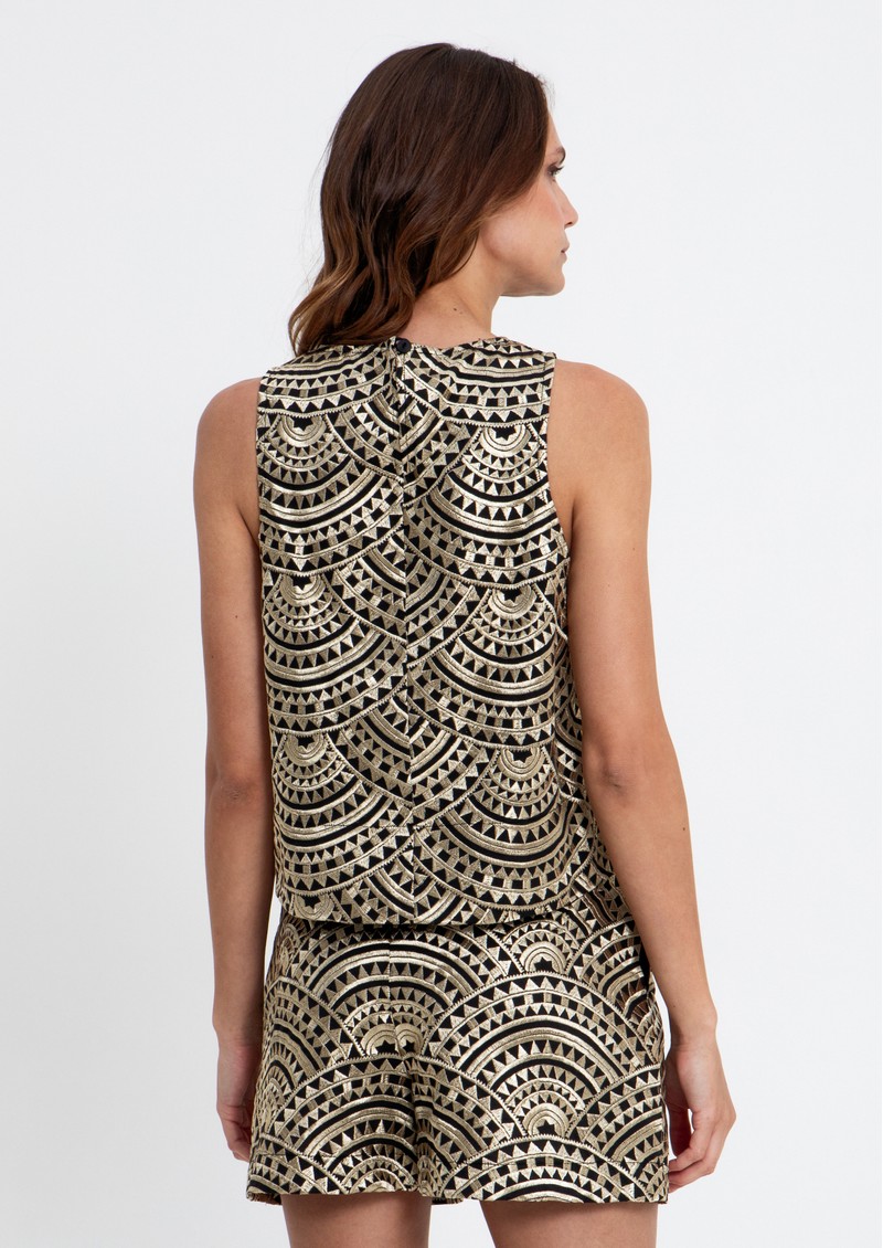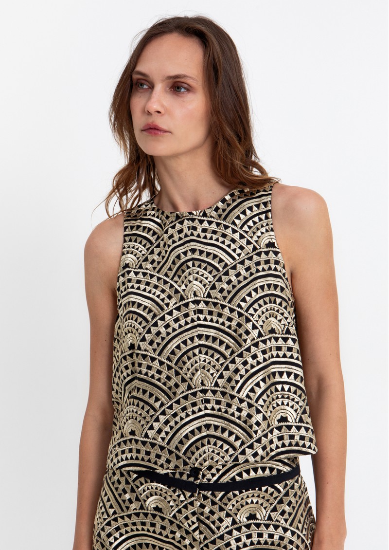 GREEK ARCHAIC KORI Sleeveless Embroidered Cotton Top - Black/Gold