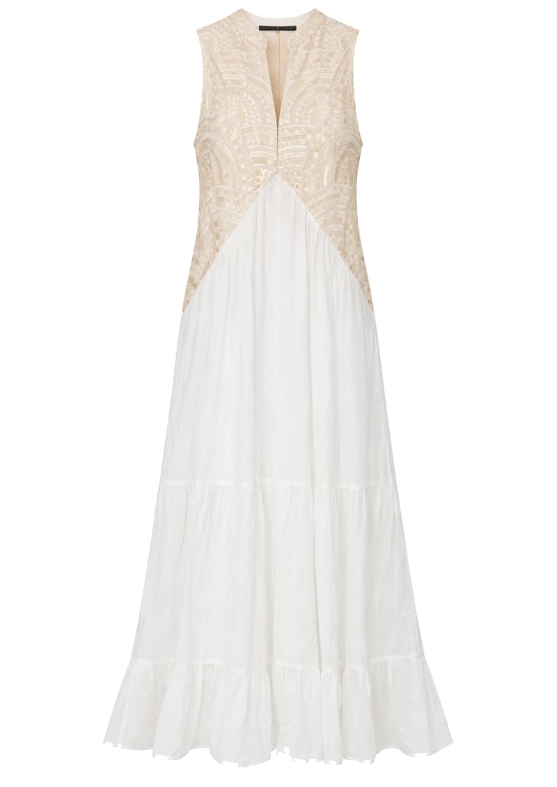 GREEK ARCHAIC KORI Sleeveless Embroidered Maxi Dress - White & Champagne