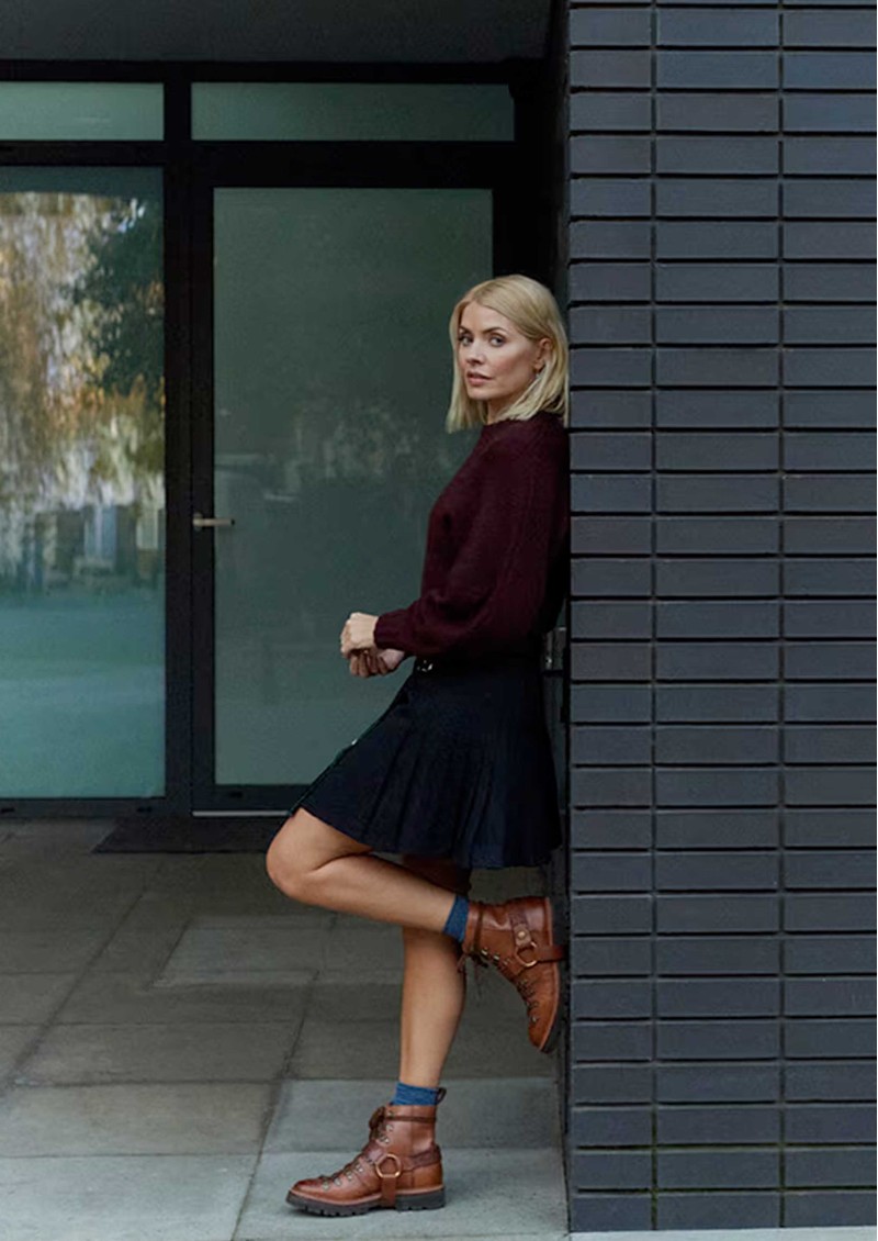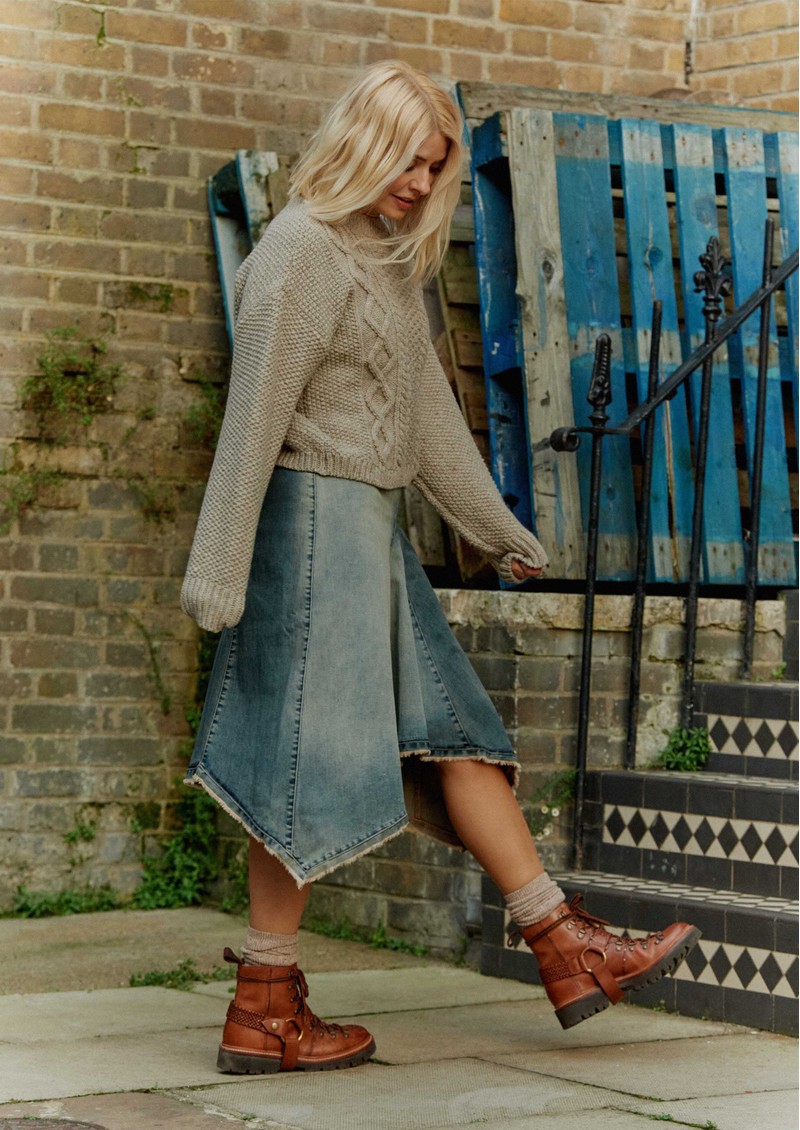 Style your Grenson boots with a Rails knitted top and skirt co-ord, finishing the look with a Naghedi bag for a chic, coordinated outfit.