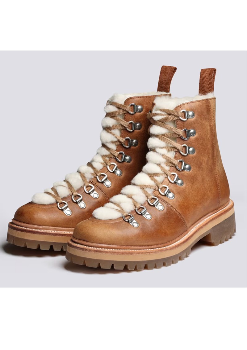These Grenson boots are made from a natural heritage calf leather, gum rubber vibram sole and full white shearling lining and tongue