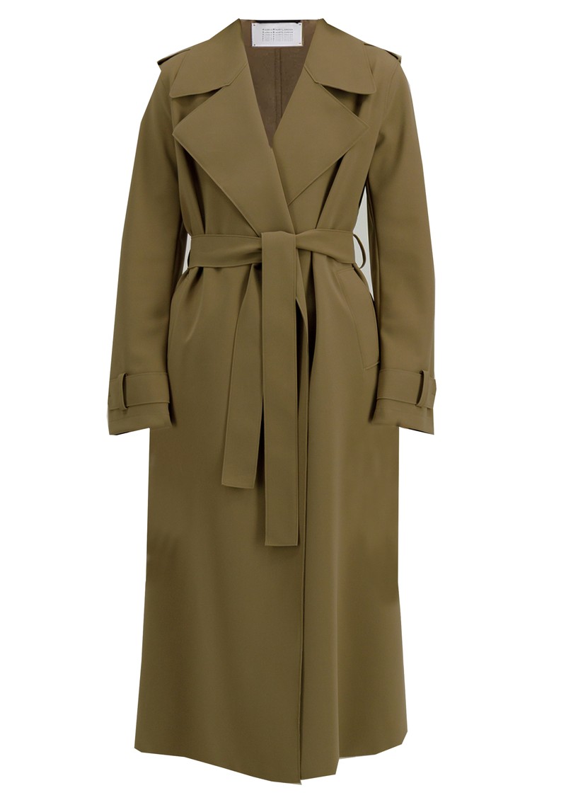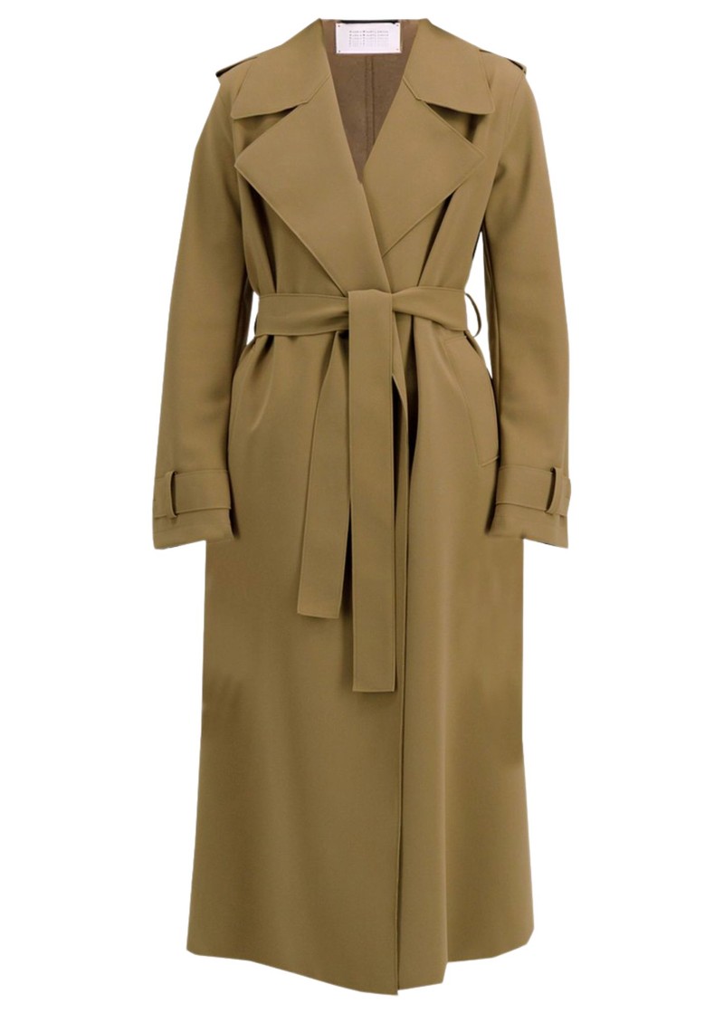 The Harris Wharf Long Trench Scuba in Tobacco is a timeless piece crafted from a luxe polyamide and elastane scuba fabric. Featuring a classic wide collar, full-length sleeves, a waist belt, and a flattering midaxi length, this trench is a versatile wardrobe staple. Key features include: