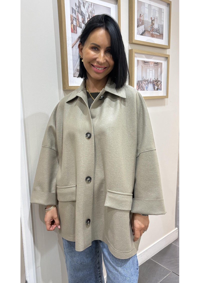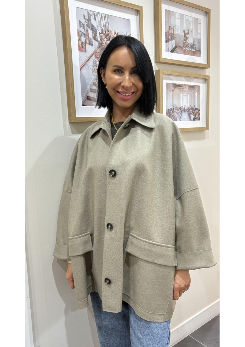 The Oversized Cape coat from Harris Wharf, is designed in a fabulous taupe coloured pressed wool. This iconic silhouette drapes beautifully over blouses or jumpers, elevating your new season looks. Other features include: