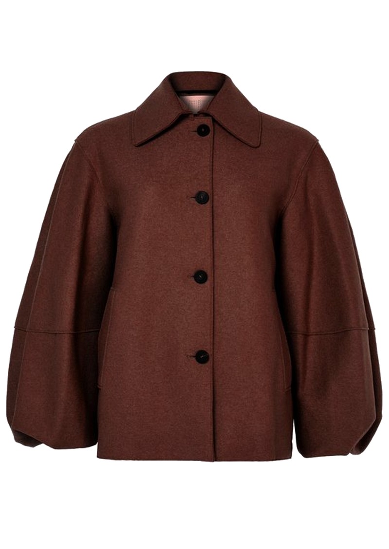 The Puff Sleeve Jacket from Harris Wharf, is designed in a chic cognac pressed wool fabrication. This iconic silhouette features fabulous full length puff sleeves, perfect for elevating your new season looks. Other features include: