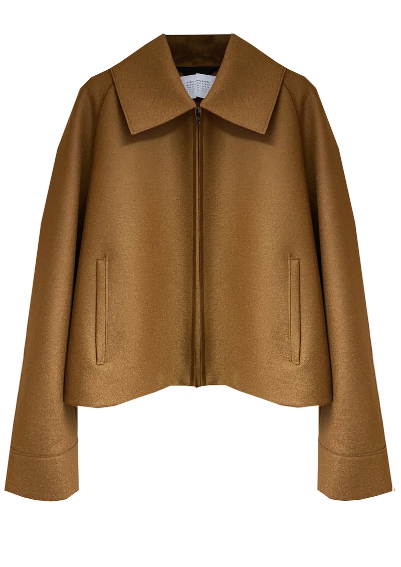 Introducing the Harris Wharf Raglan Drawstring Jacket in a gorgeous warm toffee brown hue. This boxy shape style is made from their signature light pressed wool. Featuring a zip front closure and drawstring pulls at the bottom, this jacket also features: