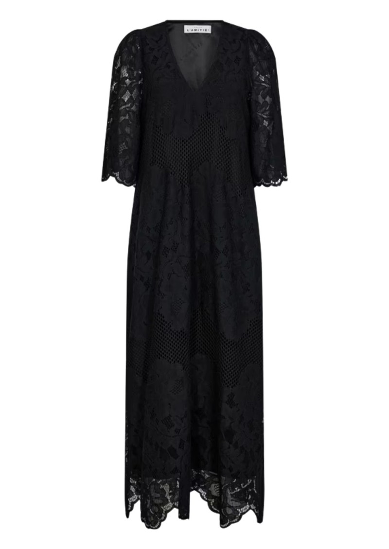 HAUTE LAMITIE Curvey Lace Hem Dress - Black