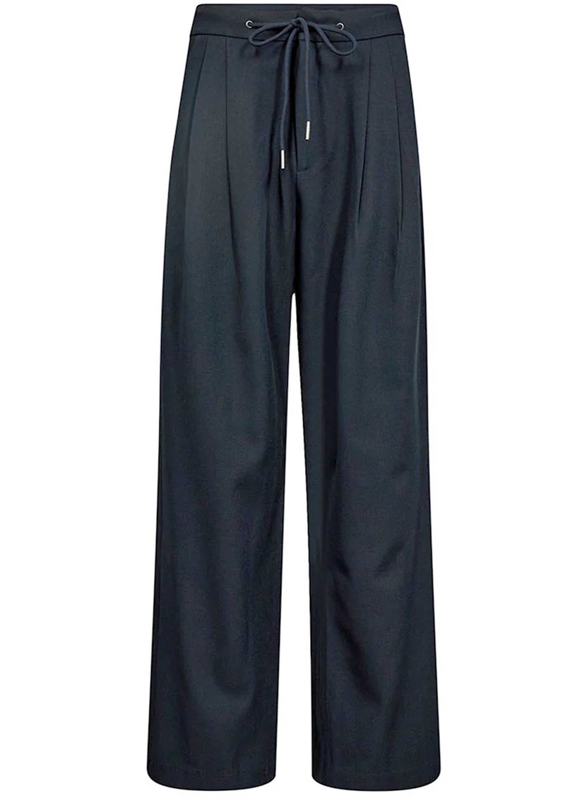 The Haute Lamitie Michelle Tailor Tie Pant in navy offers a modern take on classic tailored trousers, combining comfort with clean, smart lines. Made from a soft polyester blend, they feature a straight-leg silhouette, subtle pintuck detailing beneath the waistband, and a drawstring waist for a relaxed, adjustable fit.