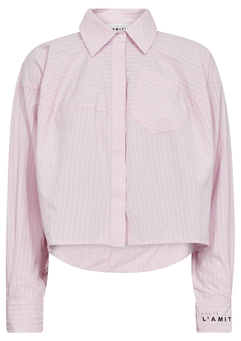 The Haute L’Amitié Sophie Rose Stripe Shirt in Iced Rose puts a modern twist on the classic shirt with a soft cotton-viscose blend and a delicate pink striped design. It features a classic pointed collar, central button closure, and an off-centre chest pocket, with dropped shoulder seams and a relaxed, cropped fit that sits at the waist for effortless style.