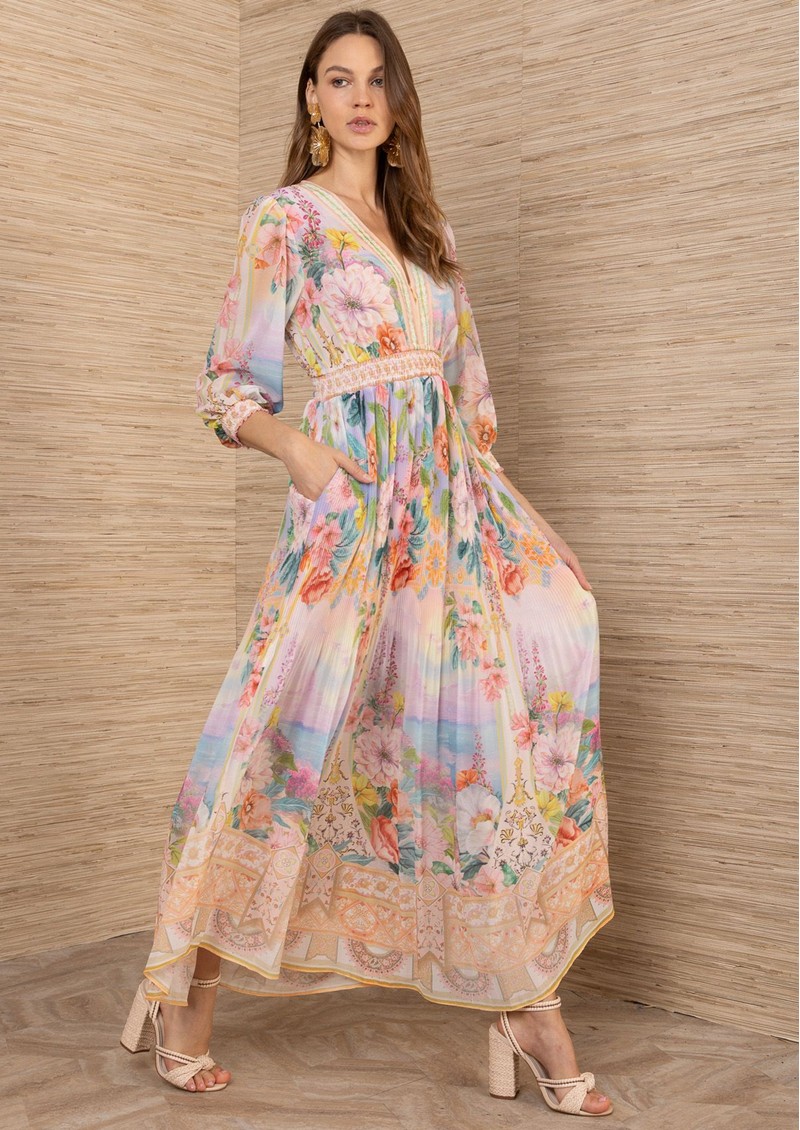 Hale Bob Floral Sunset Midaxi Dress - Gold Pastel