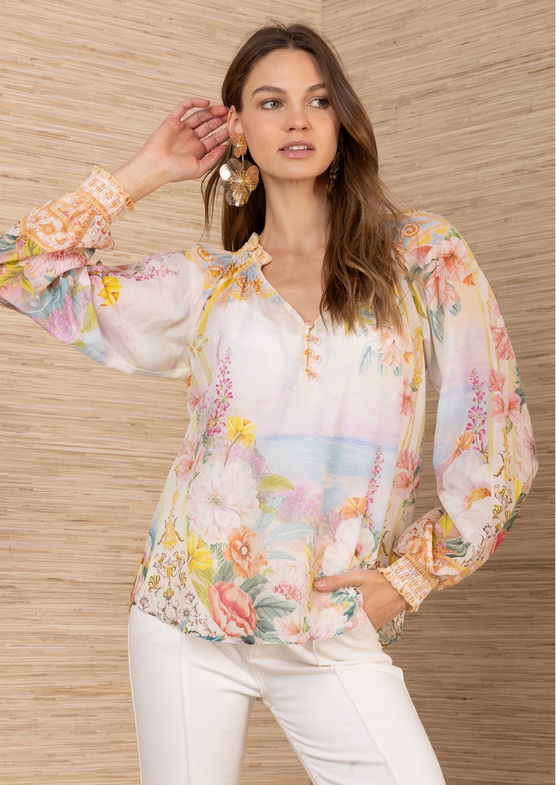 Hale Bob Floral Sunset Printed Blouse - Gold