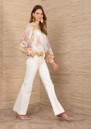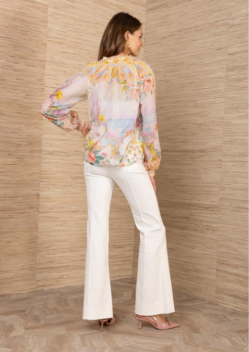 Introducing this stunning Hale Bob Floral Sunset Printed Blouse, with an array of gorgeous bright colours for a fresh, unique piece. A mix of tropical flowers and a sunset scene, all placement printed to sit perfectly on the body, Made from a light silk cotton mix, this blouse features: