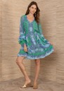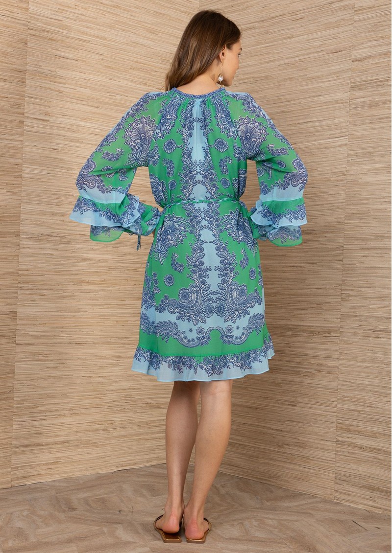 Hale Bob Frilly Paisley Mini Dress - Green & Blue