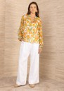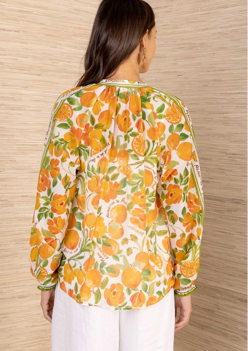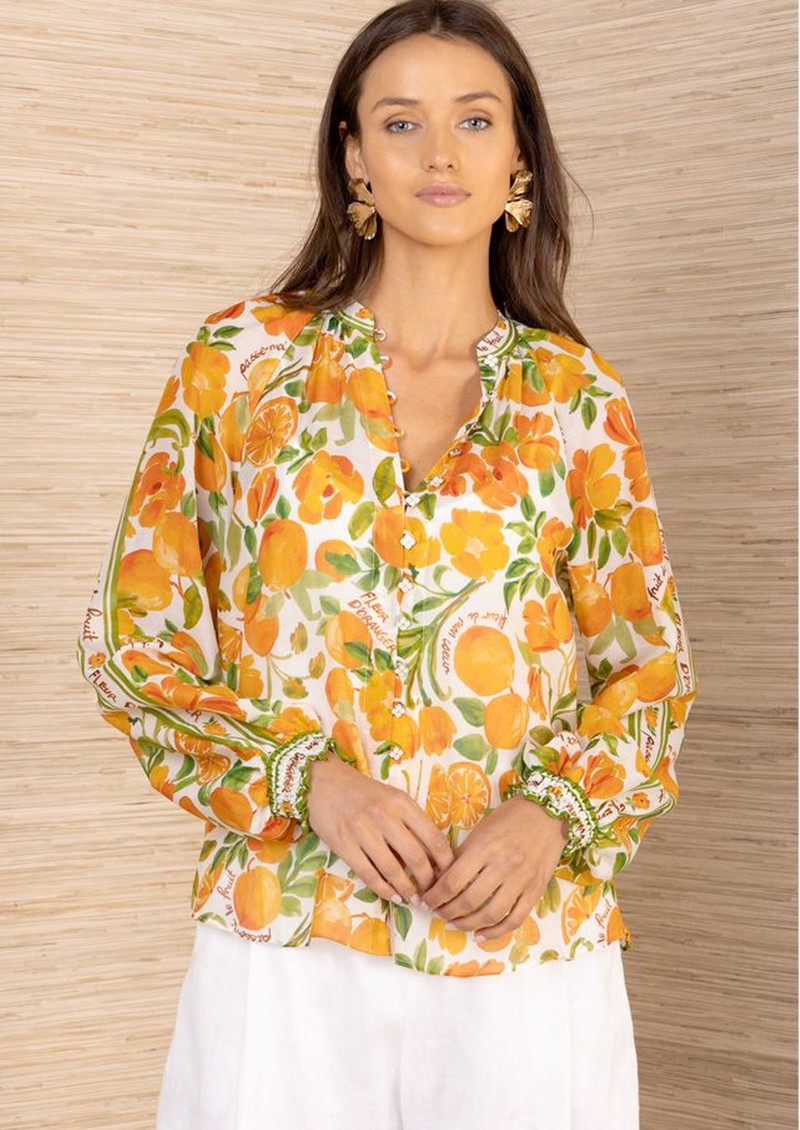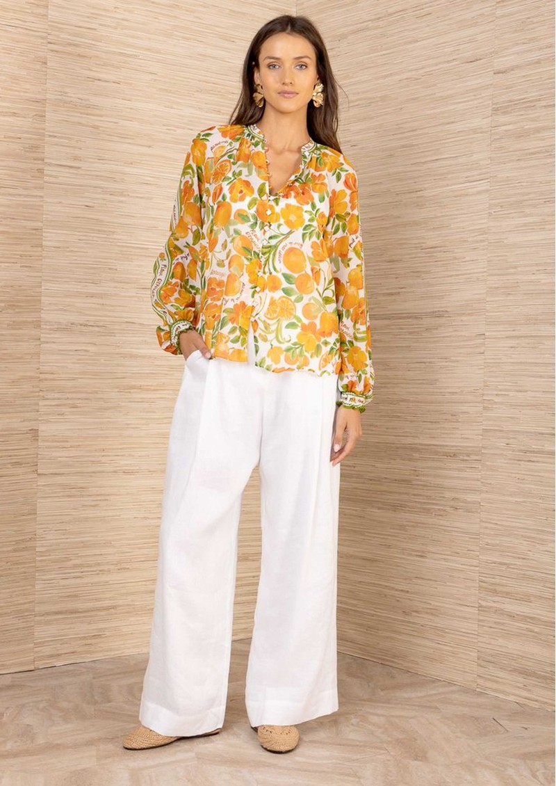 The HaleBob orange print blouse has a light, floaty feel with an all-over vibrant print that brings a fresh, statement edge to the silhouette. Designed with a full button-down front and long sleeves, it offers an effortless drape and easy elegance for everyday wear.