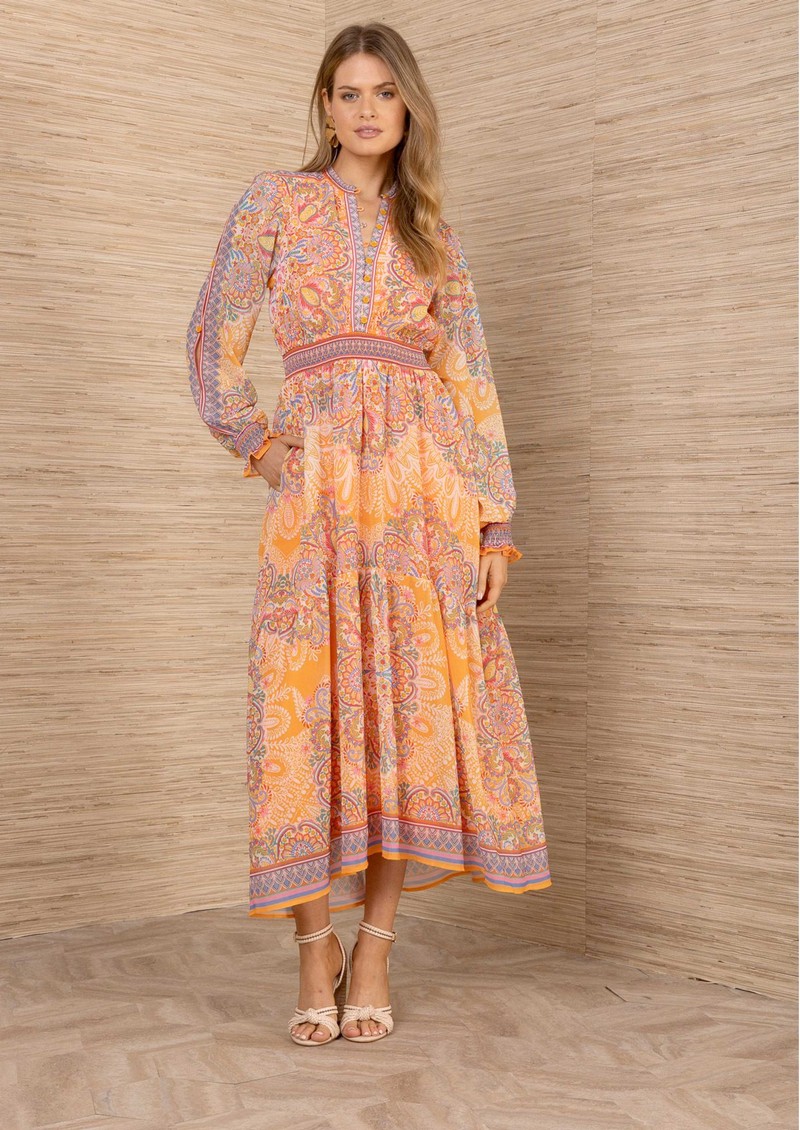 The HaleBob paisley midaxi dress exudes effortless elegance with its floaty silhouette, defined waistband, and intricate all-over paisley print. Finished with voluminous sleeves, frilled cuffs, and a refined buttoned neckline, it’s a standout piece for any occasion.