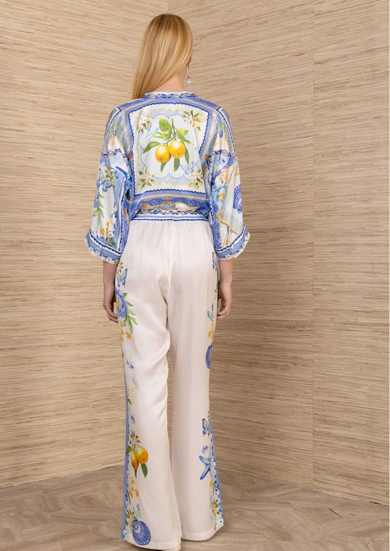 The HaleBob tile-print trousers combine comfort and style with their loose, straight-leg pyjama silhouette and elasticated waistband. Featuring an all-over intricate blue tile print, these full-length trousers are perfect for effortless, chic lounging or casual outings.