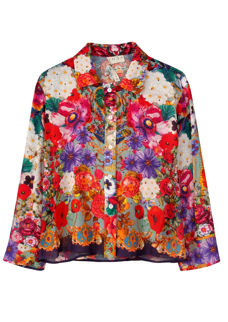 Say hello to this Inoa Bonnie Shirt. This piece is crafted from a luxe crepe fabrication, and features an all over vibtant floral print, highlighted with shimmering rhonestones. This piece is perfect for summer, teamed back with anything from jeans to linen. Key features of this Inoa top are: