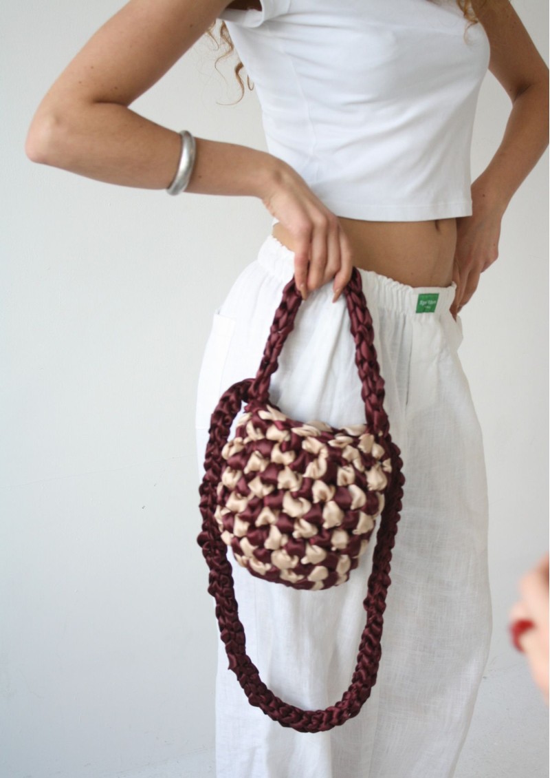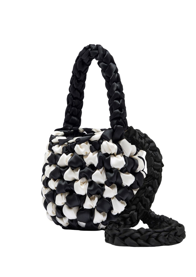 Introducing new British Brand, Isla De Gar, beautifully handcrafted bags that are unique and beautiful. This Hive Crossbody Checkerboard bag in Mono is designed in their signature satin crochet and also features: