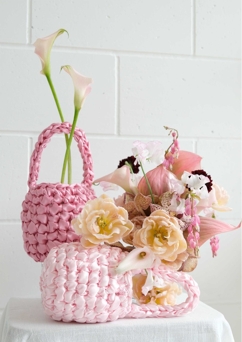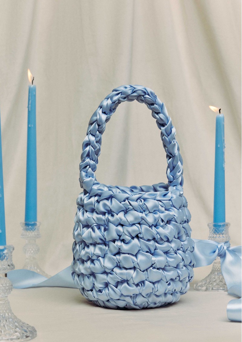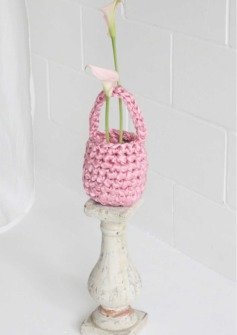 This Isla De Gar bag is made from satin ribbon with a metal popper. Beautifully handmade in London.