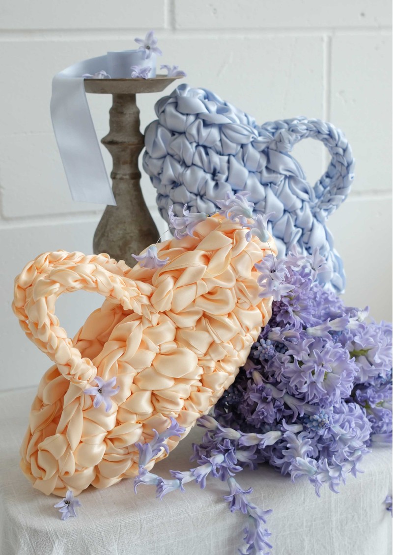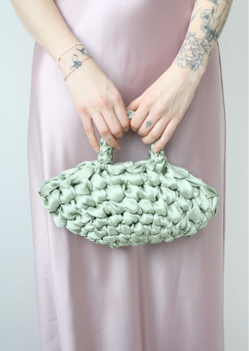 A standout evening piece, the Isla De Gar Nest Satin Bag in butter brings a soft, luminous tone to its sculptural basket-inspired silhouette, echoing the intricate form of a bird’s nest in a refined satin weave. Handmade in a North London studio, it feels considered and distinctive, perfect for elevated evening looks.