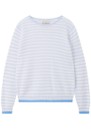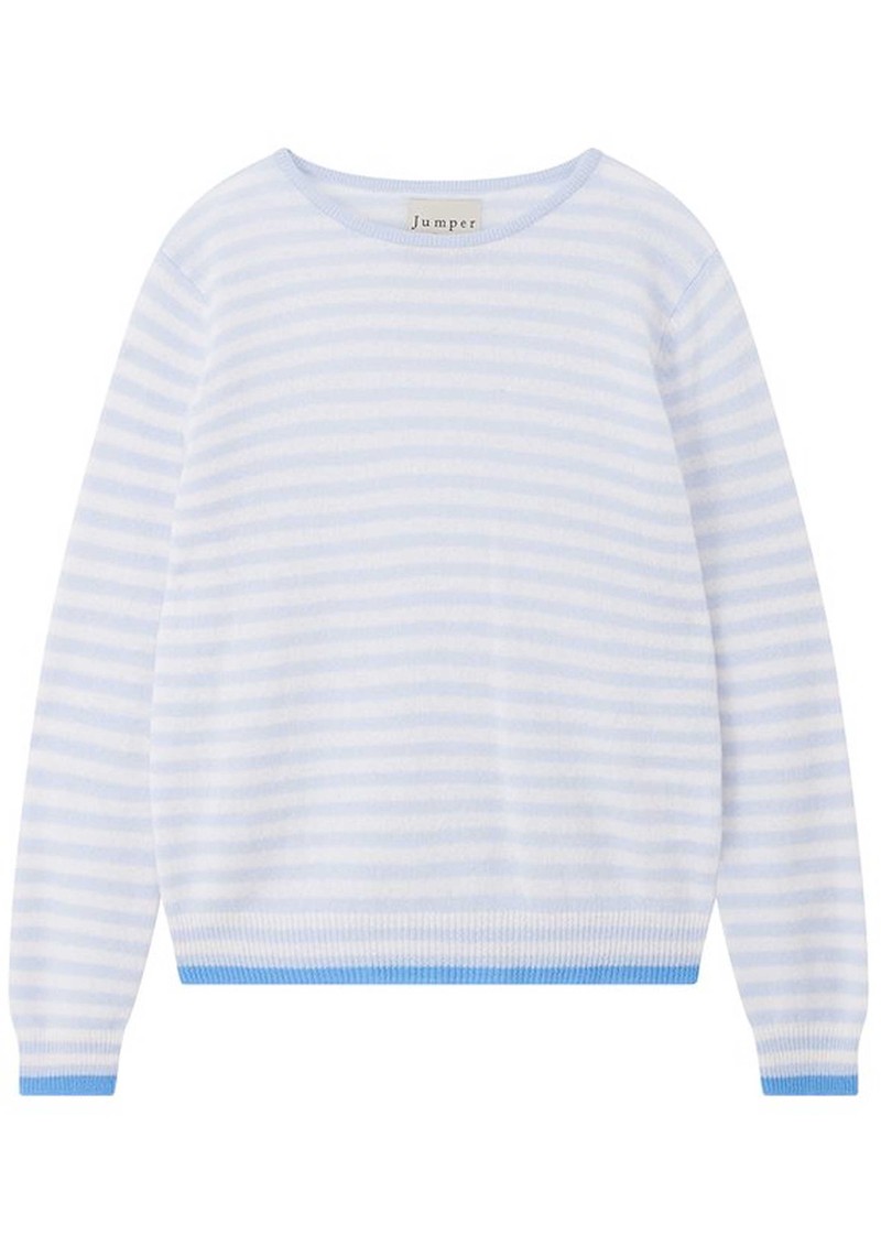 JUMPER 1234 Tipped Stripe Cashmere Crew Jumper - Azure/Lily