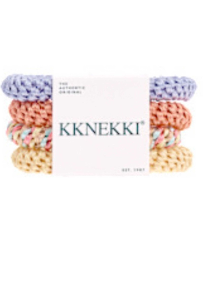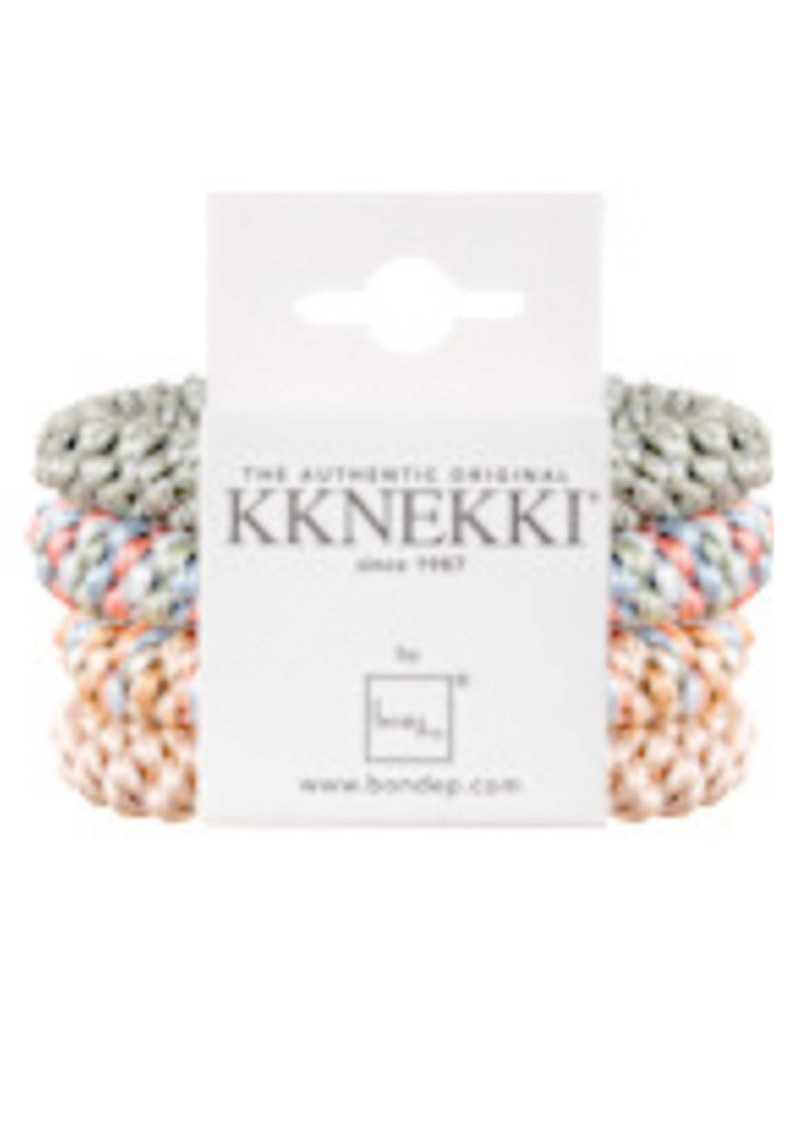 Kknekki hair ties have earned a global reputation for their reliability and charm. This Kknekki pack of four offers the perfect mix of fashion and function. Designed with a distinct weaving process, each band feels silky-smooth, works with every hair type, and holds up beautifully—even after a splash in the sea.