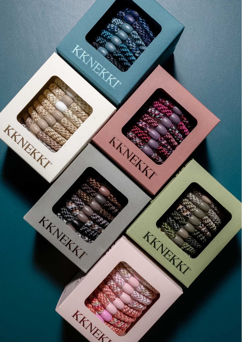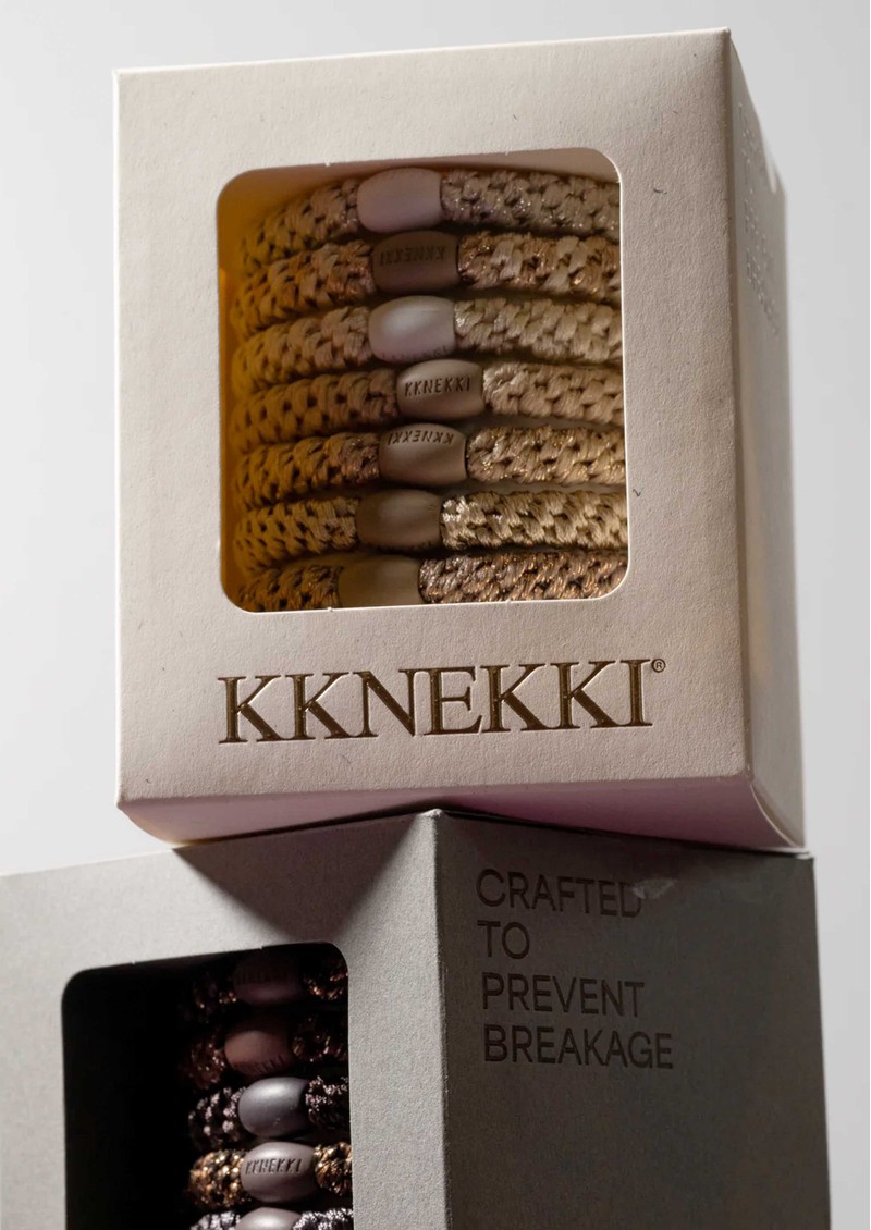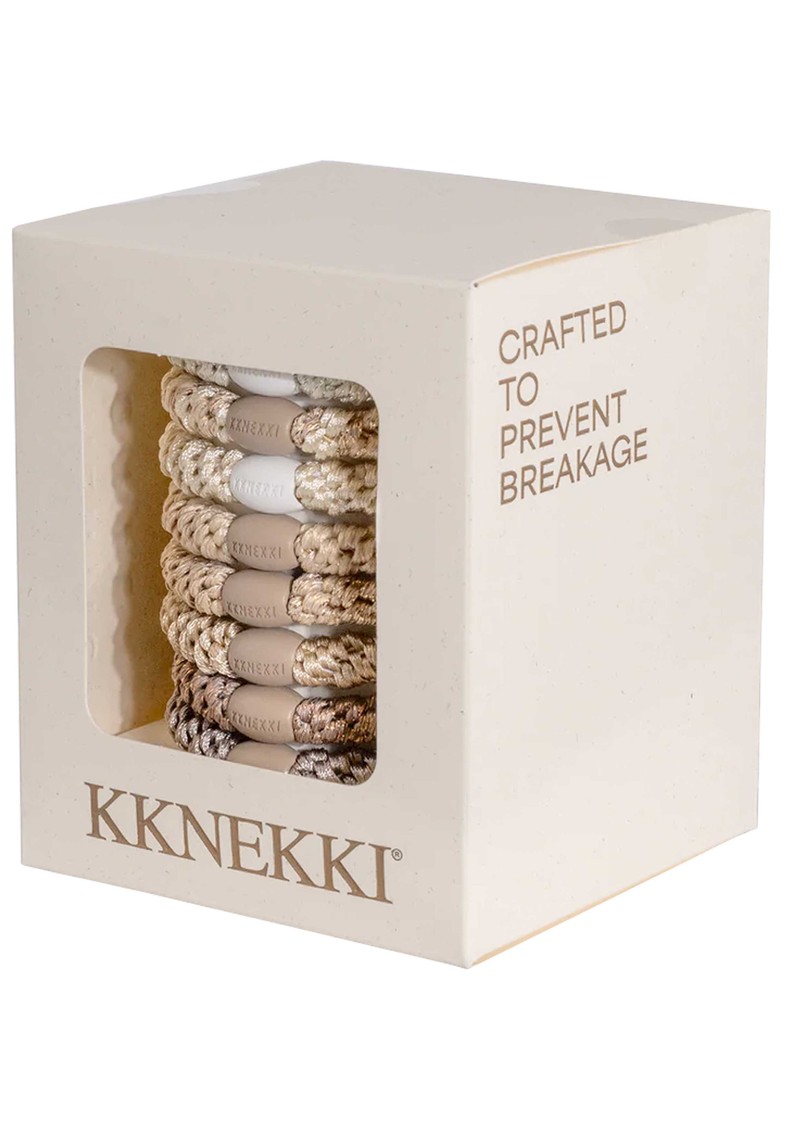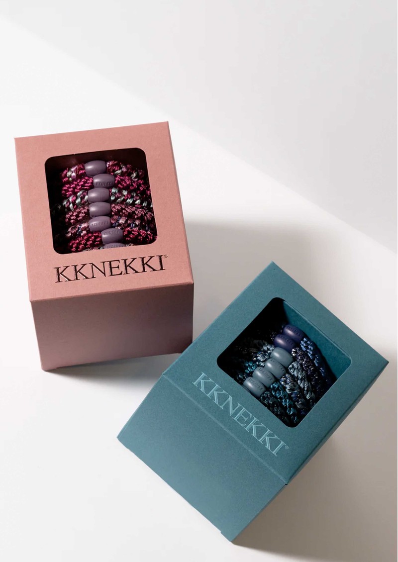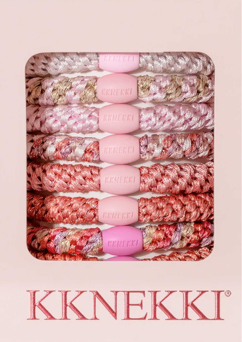 Infuse your style with soft, feminine charm using the Kknekki Hair Bundle 8-pack in Ballet-a delicate array of pink shades ranging from blush to rose. Woven with Kknekki’s signature technique and finished with a luxuriously soft, elastic texture, these limited-edition hair ties combine graceful colour with a gentle, secure hold for all hair types.