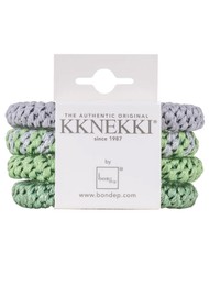 Introducing Kknekki- a new brand for the Dressing Room. Recognized as one of the best hair elastics in the world- this hair bundle 4 pack in Black glitter and Natural is the ultimate hair accessory staple. The unique weaving technique ensures the bands are super soft and compatible with all hair types. These bands won't fray, fade or slacken even in salt water. Other features for these Kknekki hair bundle include: