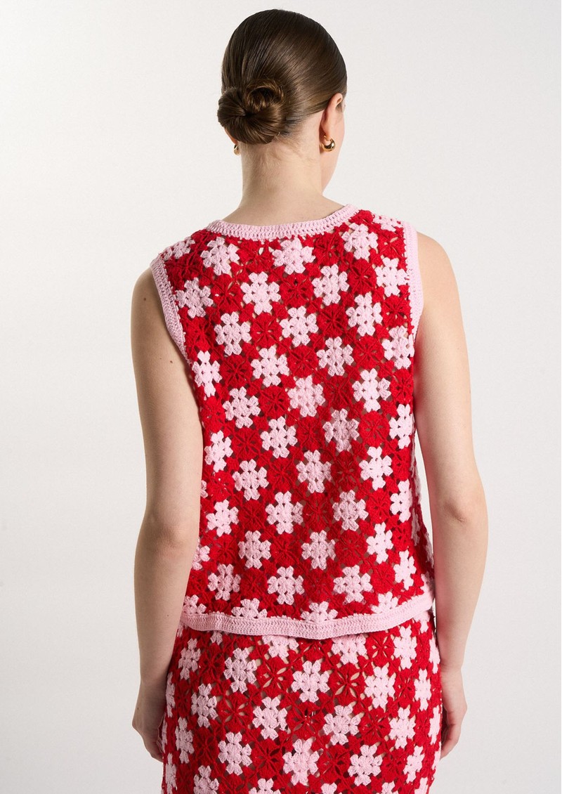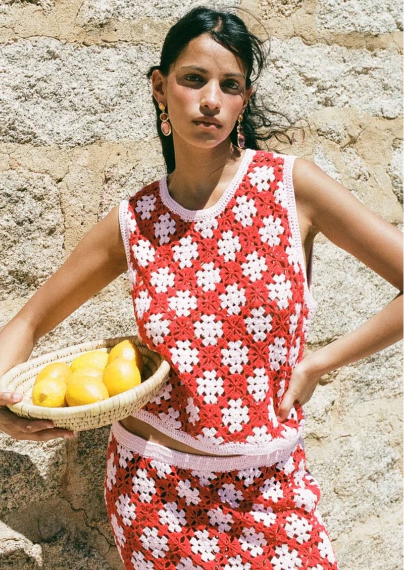Introducing new brand Les Tricots De Lea to The Dressing Room. This gorgeous Douny Crochet Top is designed in Sugar Pink, a gorgeous mix of red and pink hues. This sleeveless top also features: