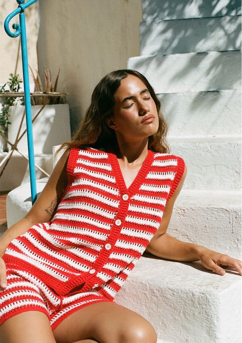Say hello to the Les Tricots de Lea Guzy Knitted Vest. This style is perfect for easy summer days. We love the cotton open knit fabrication, and the front buttons give an elevated touch. This piece is perfect for cool girl summer styling. Key features of this Les Tricots de Lea top are: