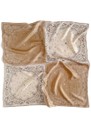The Lescarf Paisley Scarf Quartet features a striking patchwork design with four contrasting navy and sand quarters, combining intricate paisley prints with a luxurious silk finish. Its generous 80cm square shape makes it perfect to wear as a top, around the head, draped open, or tied at the neck for versatile styling.