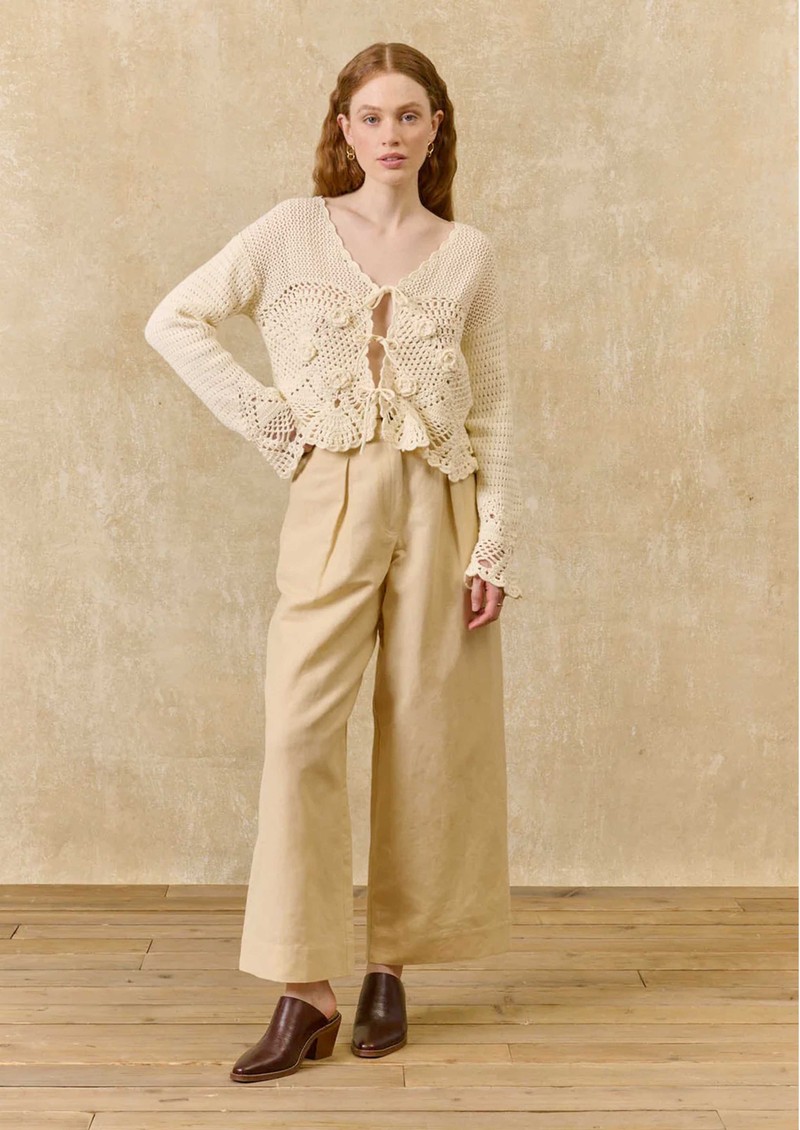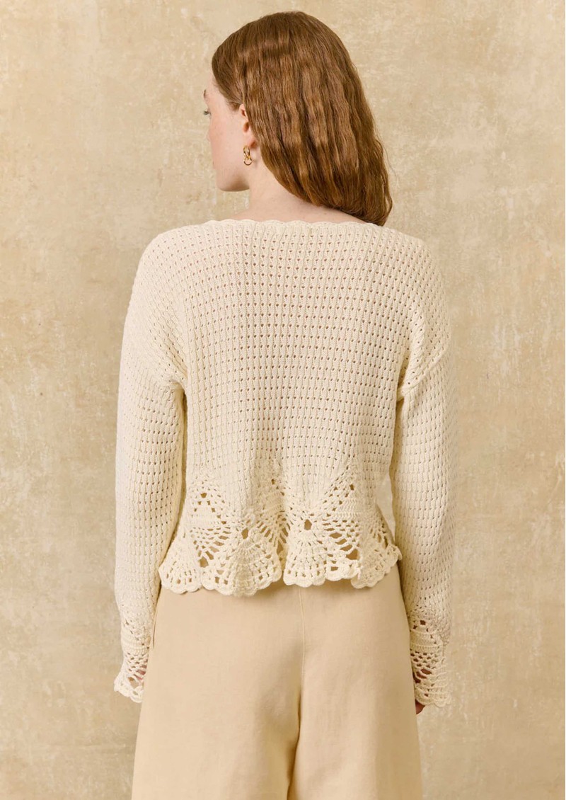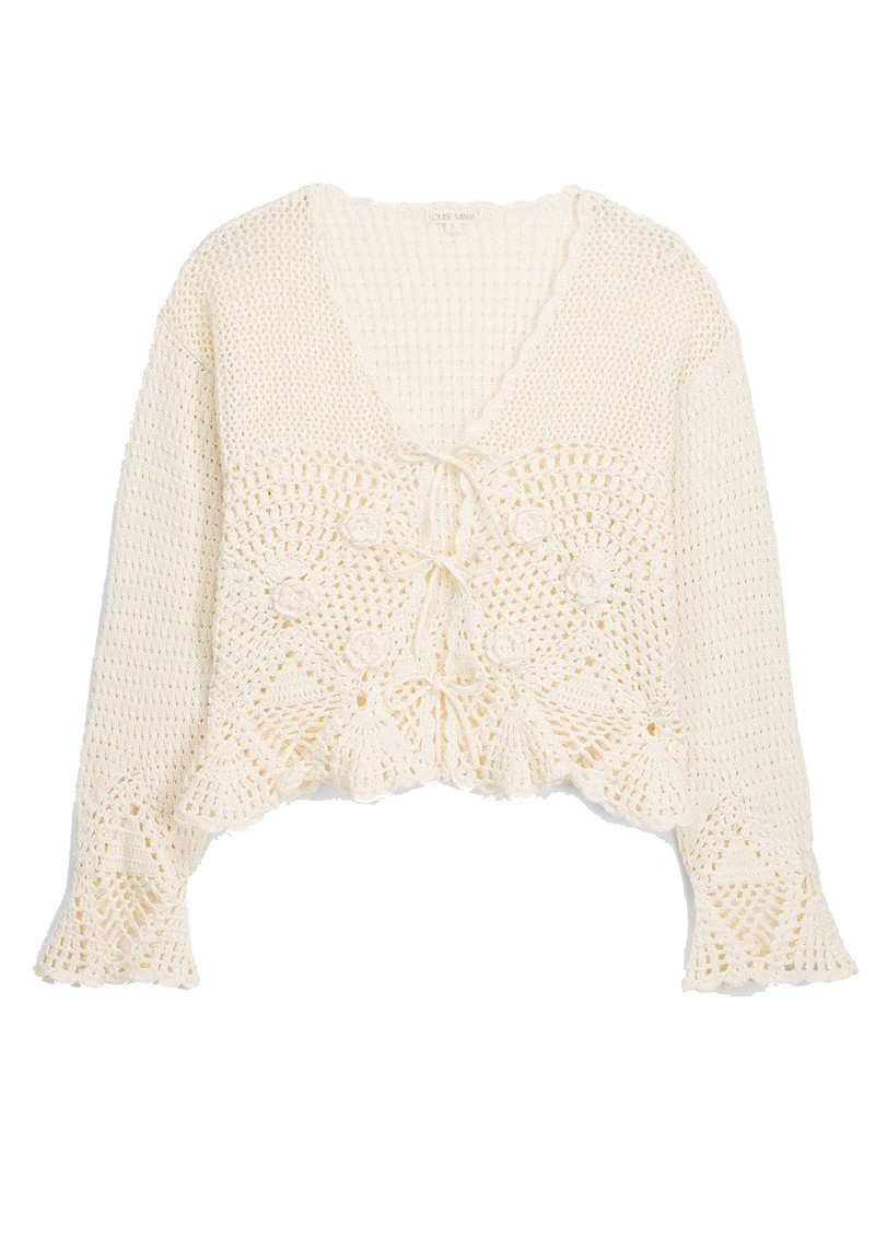 LOUISE MISHA Molya Crochet Cardigan - Cream