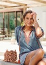 Team your M.A.B.E Suri Pouch with a M.A.B.E top, Agolde shorts, and Castaner heels for a chic, bohemian-inspired summer outfit.