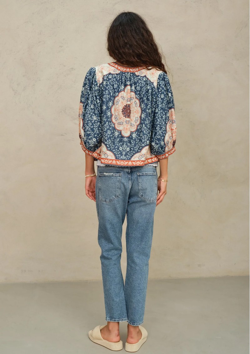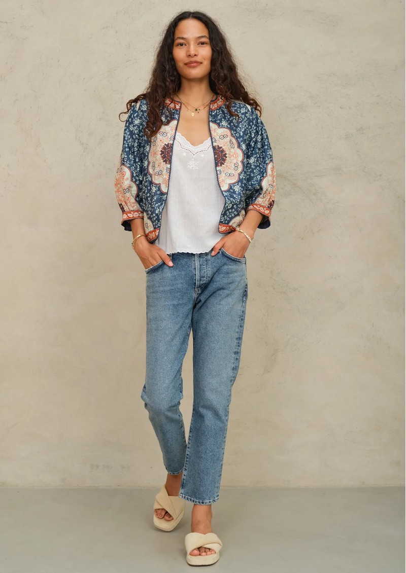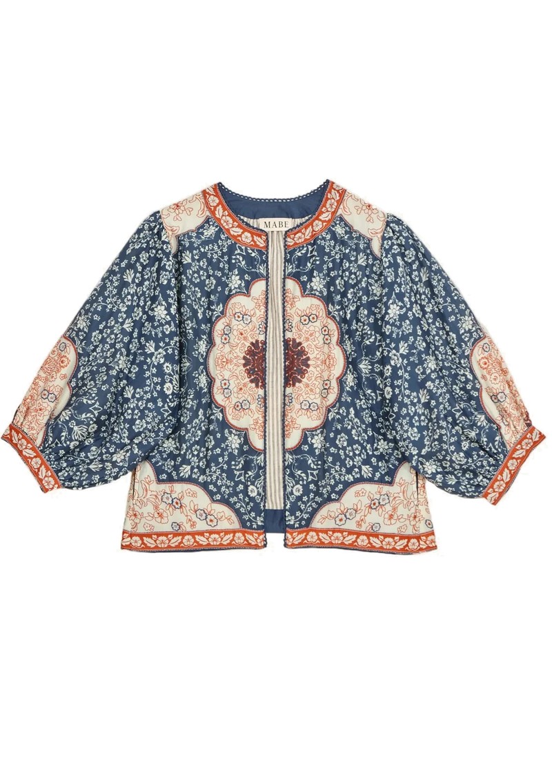 M.A.B.E Ursa Printed Embellished Jacket - Indigo & Ecru