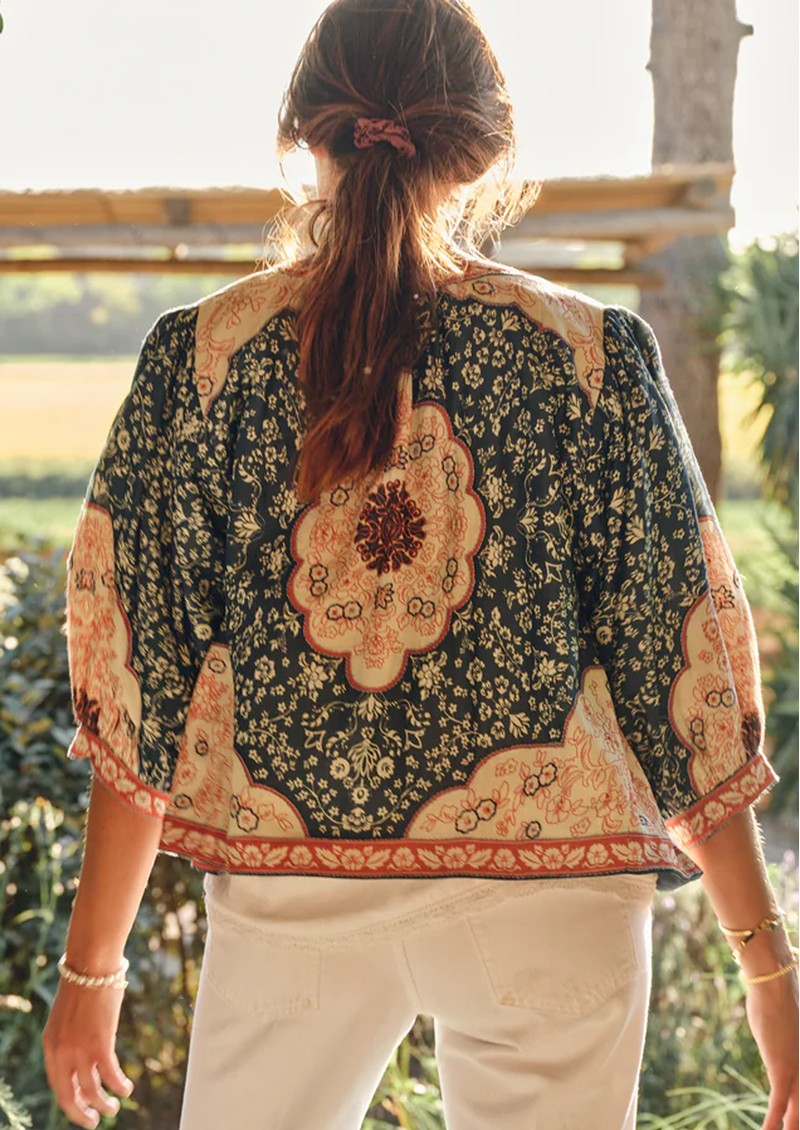 M.A.B.E is well known for their best selling printed jackets and we are obsessed with the new Ursa Printed Embellished Jacket. Designed in an Indigo and Ecru colour mix, this style features a floral and geometric print all over. Other features: