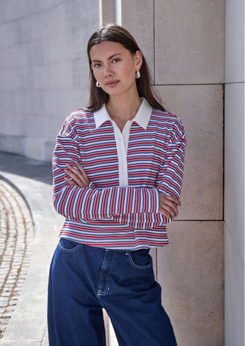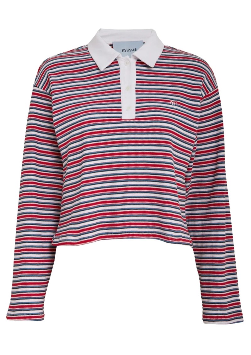 The Minus MSJorina Long Sleeve Top is perfect for nailing the Club Cool trend. Crafted from a cotton stretch blend, this long sleeve polo top features red and blue stripes for a sports luxe look. We love the contrasting collar and dropped shoulder details. Key features of this Minus top are: