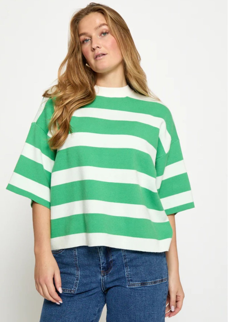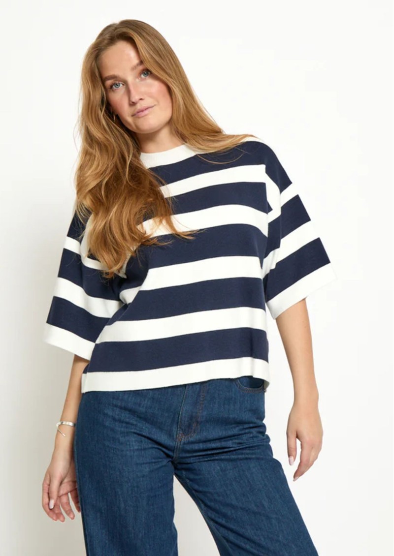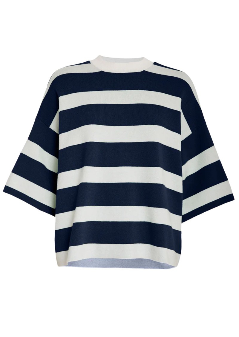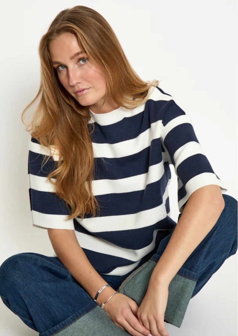 The Minus Mslupi Knit T-Shirt features a short ribbed collar and a relaxed fit, crafted from a luxurious blend of LENZING™ ECOVERO™ Viscose, Polyester, and Nylon. Designed with dropped shoulder seams and short, wide sleeves, it offers effortless comfort and a contemporary silhouette. This versatile piece is perfect for layering or wearing on its own for a laid-back, modern look.