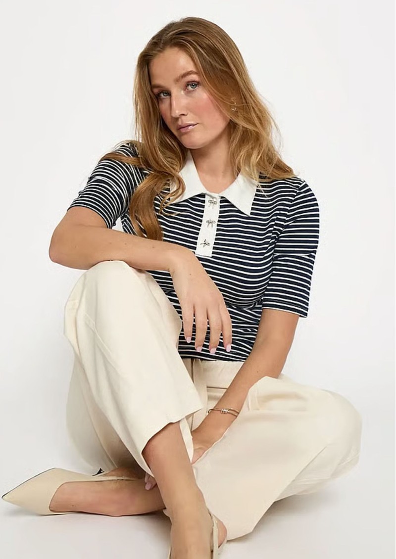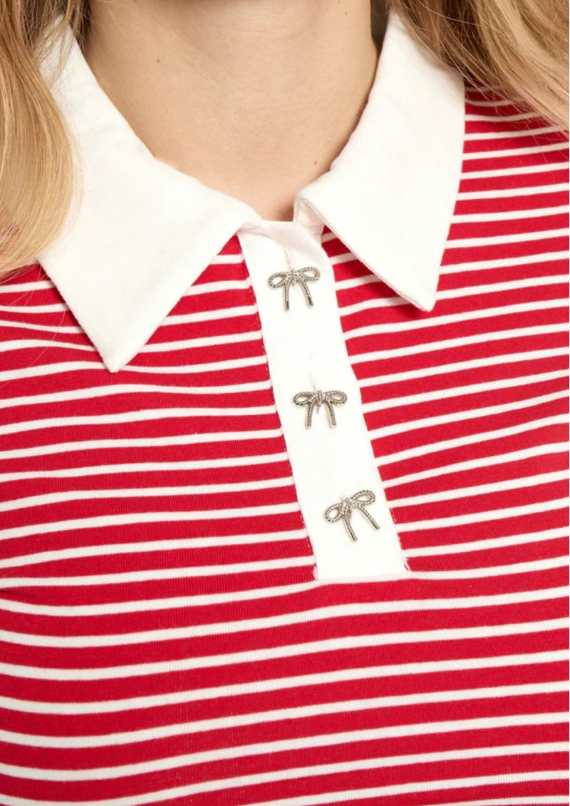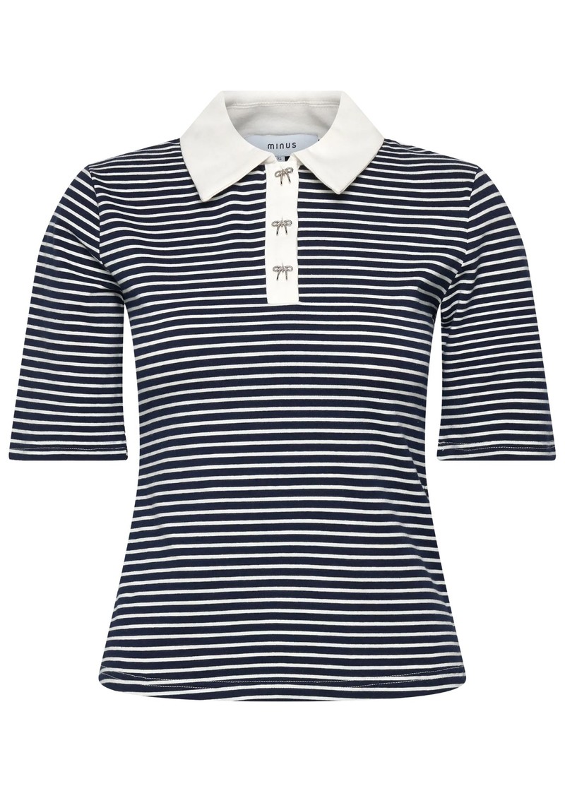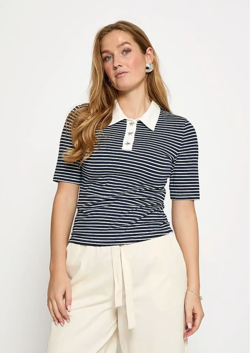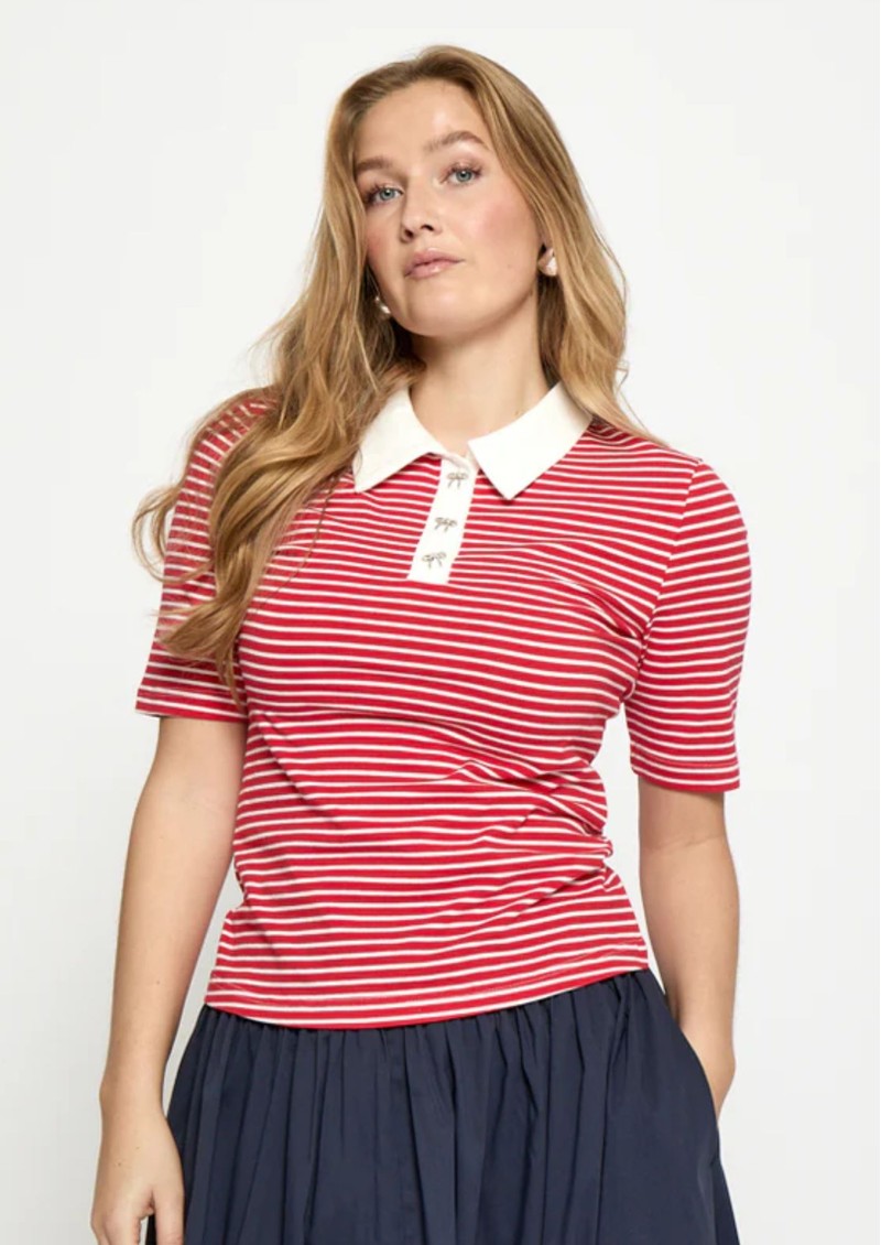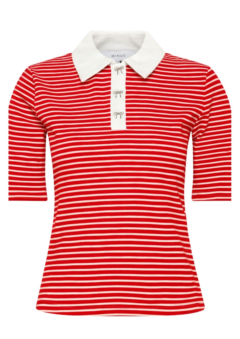 The Minus MSMalle Polo Top is perfect for nailing the Club Cool trend. Crafted from a cotton stretch blend, this short sleeve polo top features red and white stripes for a sports luxe look. We love the contrasting collar and sweet bow buttons. Key features of this Minus top are:
