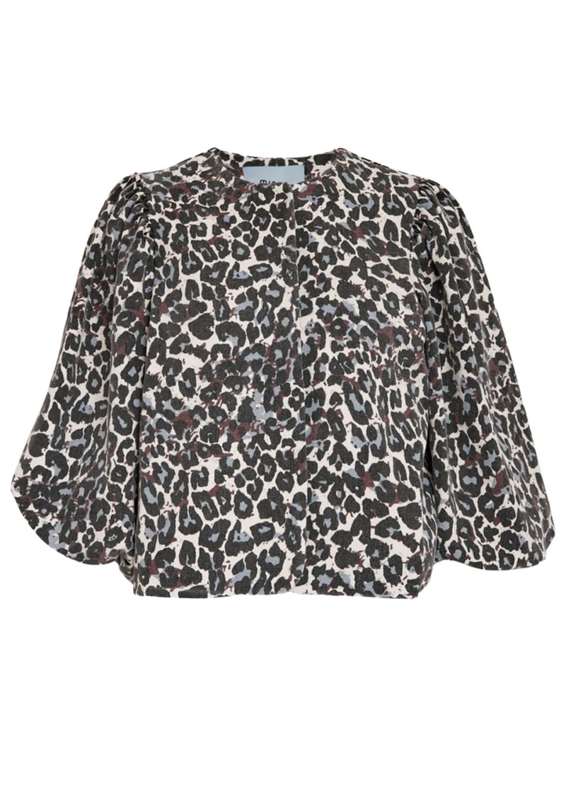 The Minus MSMalli Short Jacket is crafted from an 100% cotton fabrication, featuring a blue and brown toned leopard print design. We love the short puffy sleeves, and the round neck closure. This piece is perfect for teaming back with anything from denim to dresses. Key features of this Minus jacket are: