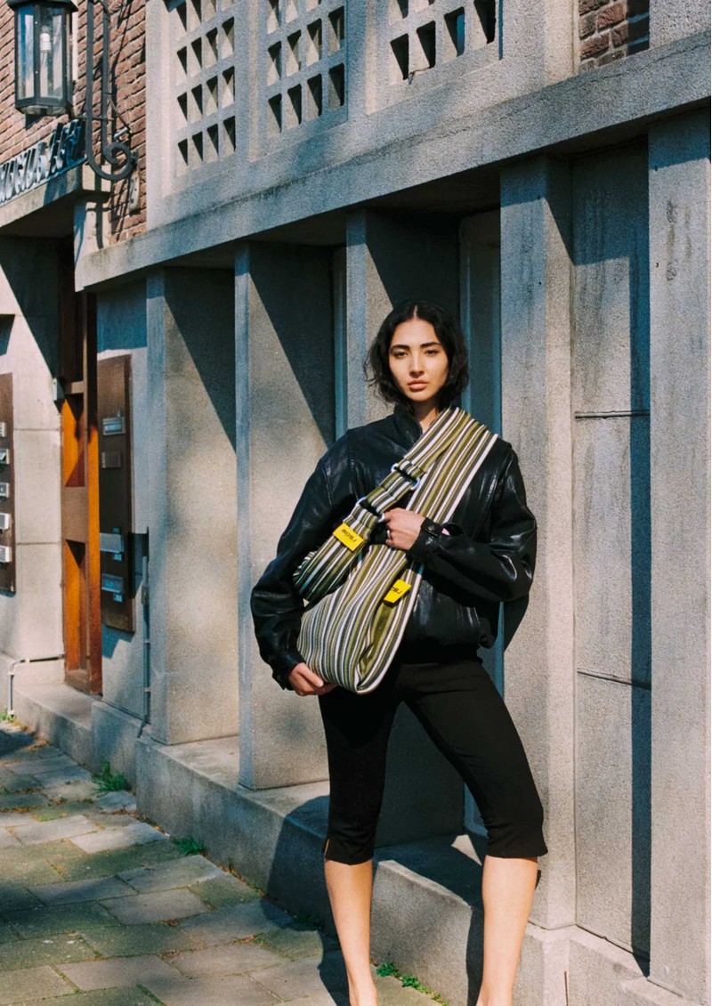 Style your Mosj Atelier bag with a Day Birger et Mikkelsen shirt and Day Birger et Mikkelsen jeans, then finish with Le Specs sunglasses for a relaxed yet elevated everyday look.