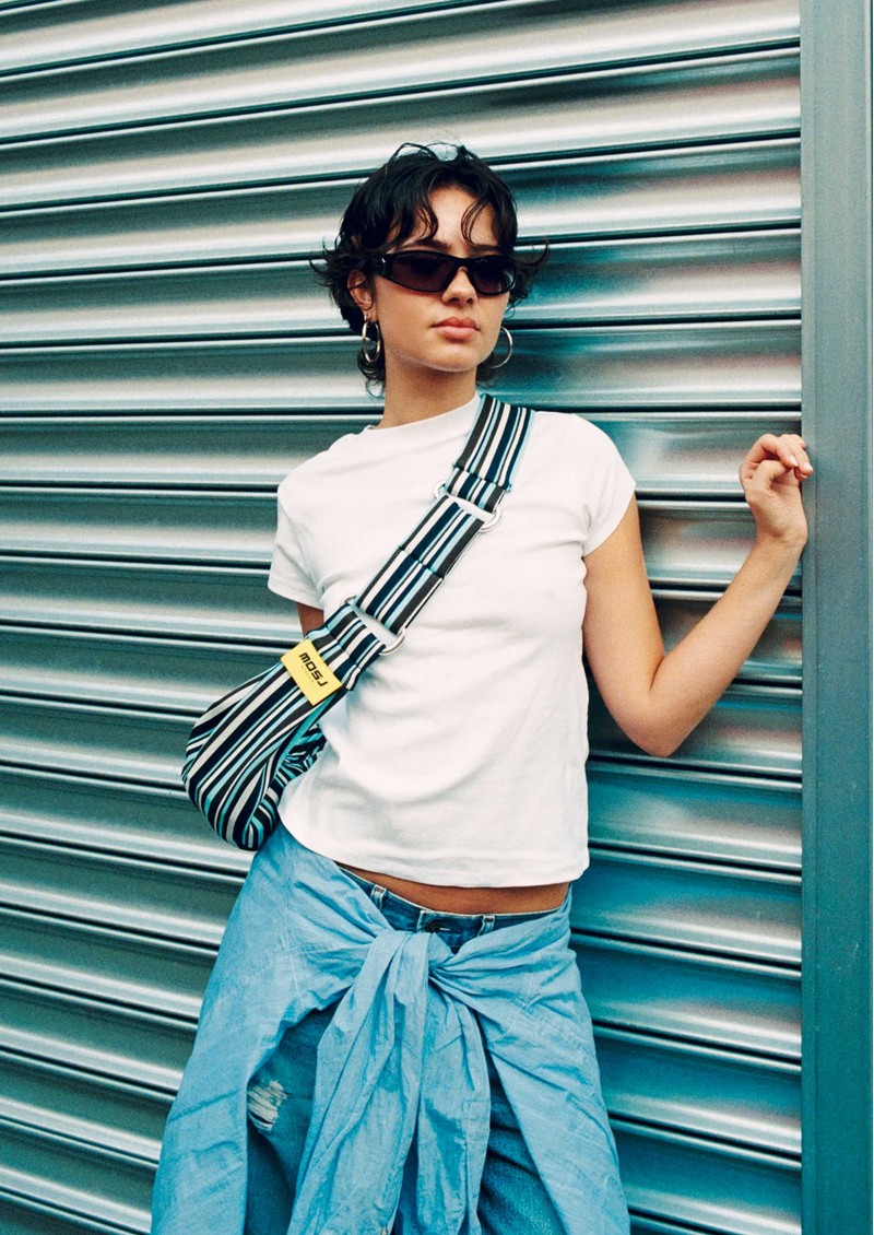Style your Mosj Atelier bag with a Haute L’amitie top and Haute L’amitie shorts, then finish with Pavement sandals for an effortless, put-together summer look.