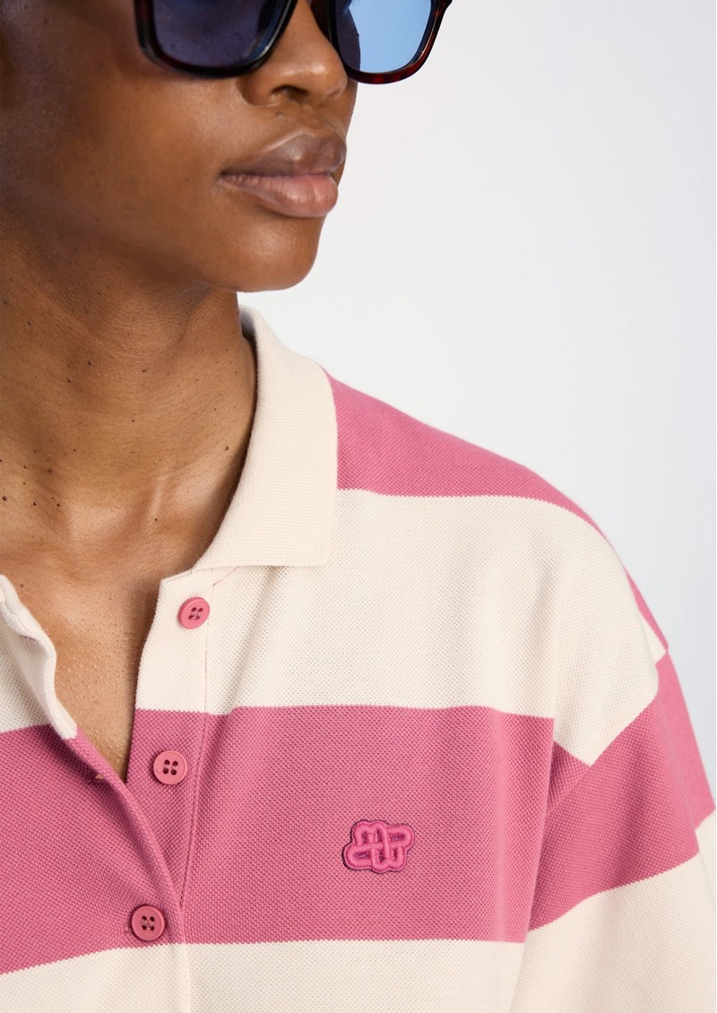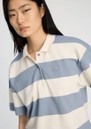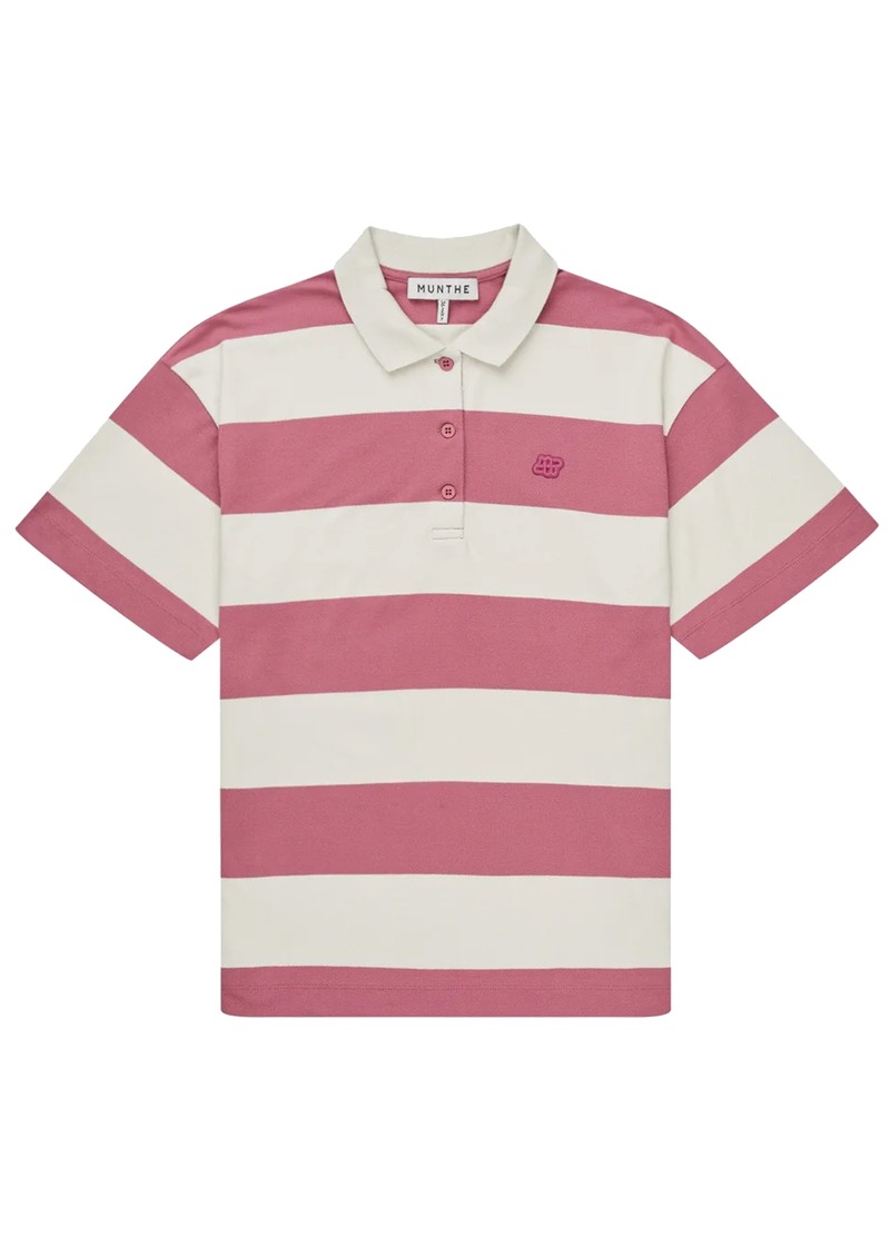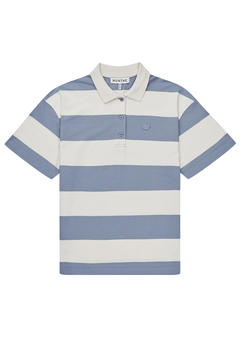 New from Munthe, meet the Baelfire Polo Top in a blue and white stripe designed. In a lightweight organic cotton fabrication, this classic polo has a collar, buttoned placket and short sleeves. Other features include: