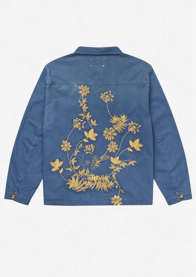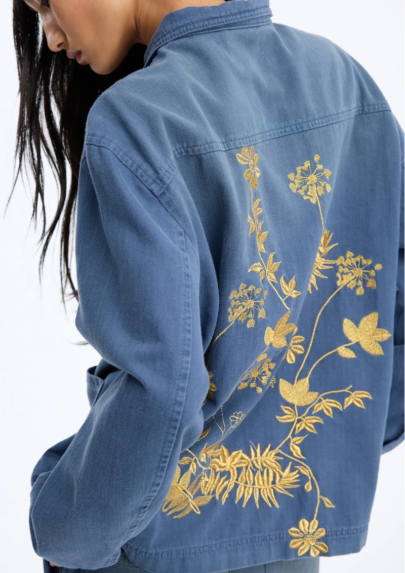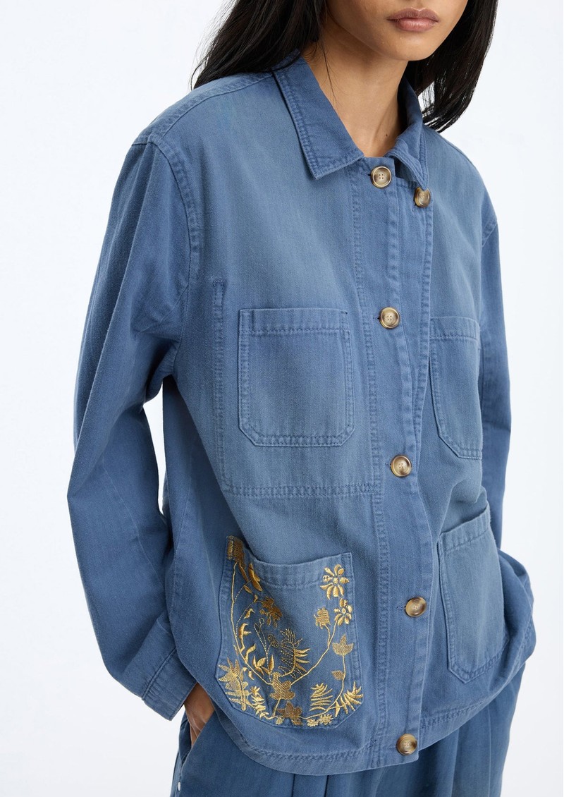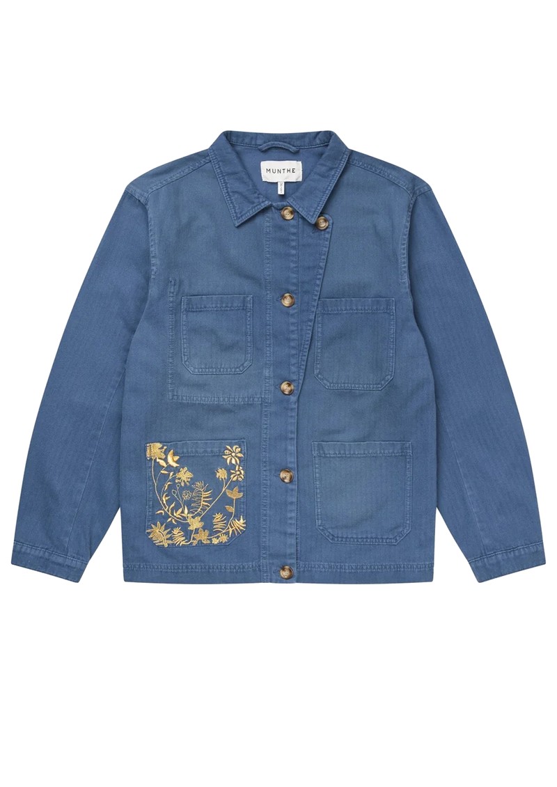 Introducing the Bayan Organic Cotton Jacket, new in from Munthe as part of their Spring Collection. This soft woven jacket is designed in a bright blue and features gold floral embroidery on the front and back which really brings it to life. Other features include: