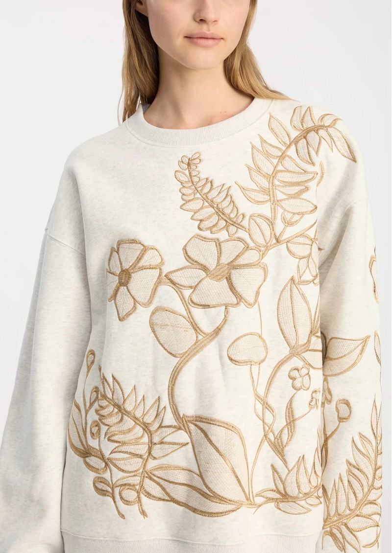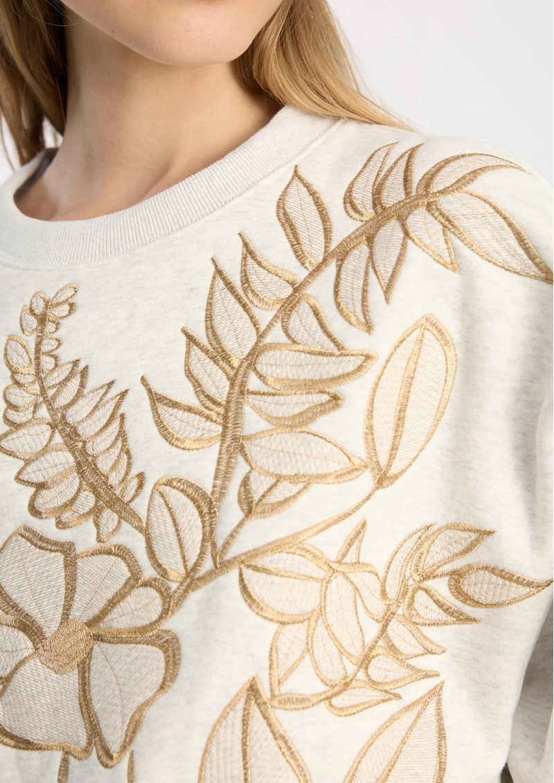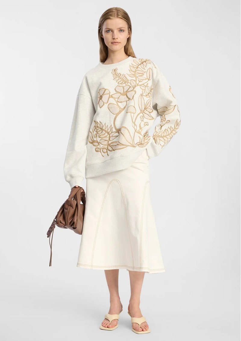Say hello to the gorgeous Munthe Braeden Sweatshirt in Light Grey, part of their Spring drop. This slightly oversized sweater features gold floral embroidery across the front and sleeves for a truly special piece. Other features include: