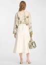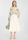 - Midi length, flared hem skirt