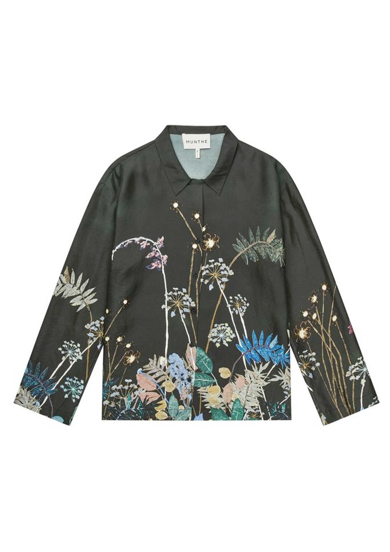 The Munthe Silk Faiza shirt is a timeless piece featuring a pointed collar, central button closure, and dropped shoulder seams for a relaxed fit. Printed with a colourful floral pattern all over a black base and finished with full-length sleeves, it brings a vibrant, contemporary twist to a classic shirt silhouette.