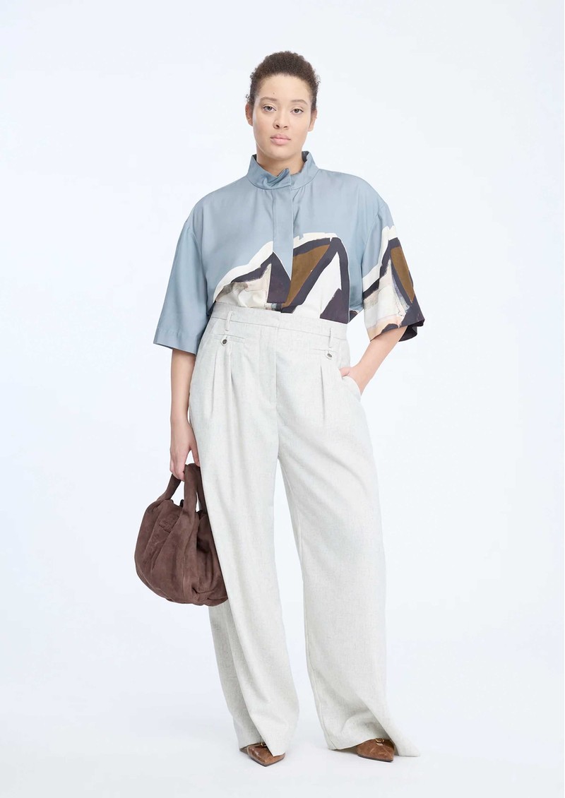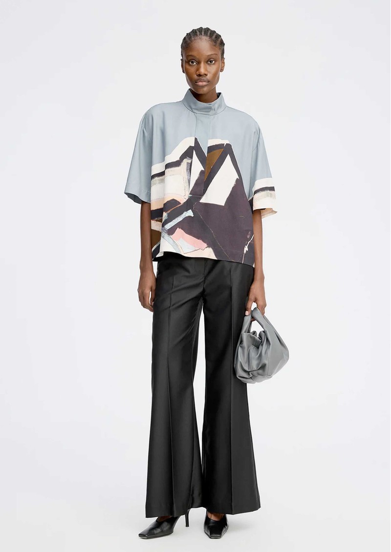 The Munthe Roger Shirt is a beautiful blouse featuring an elegant art print, short sleeves, a small collar with fine button closure, and a half-open front. Made from 100% viscose (53% Lenzing™ Ecovero™) and designed with a loose fit, each piece is uniquely patterned with minimal-waste production for a sustainable, stylish look.