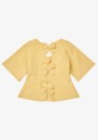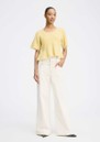 The Munthe Rylaline Bow Back Top in a lemon-hued alpaca blend is a soft, short-sleeved knit featuring three delicate bows on the back and a subtle peplum effect at the hem for a feminine silhouette. Designed with a regular fit, it combines elegance with everyday comfort.