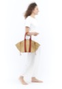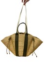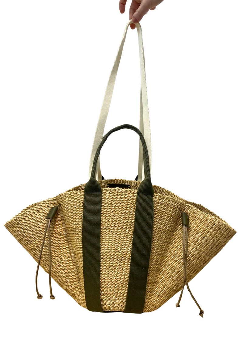 This Muun bag is Crafted from hand-woven elephant grass with polyviscose handles and a cotton inner pouch.
