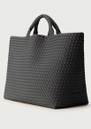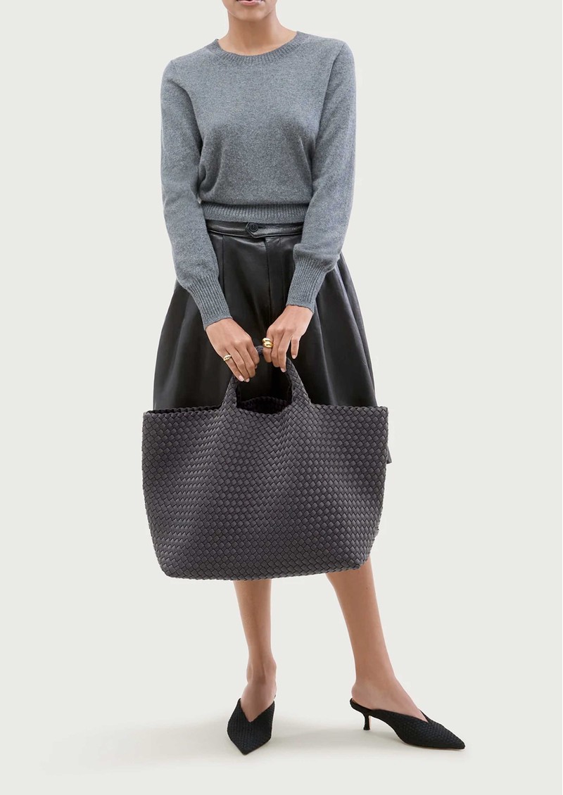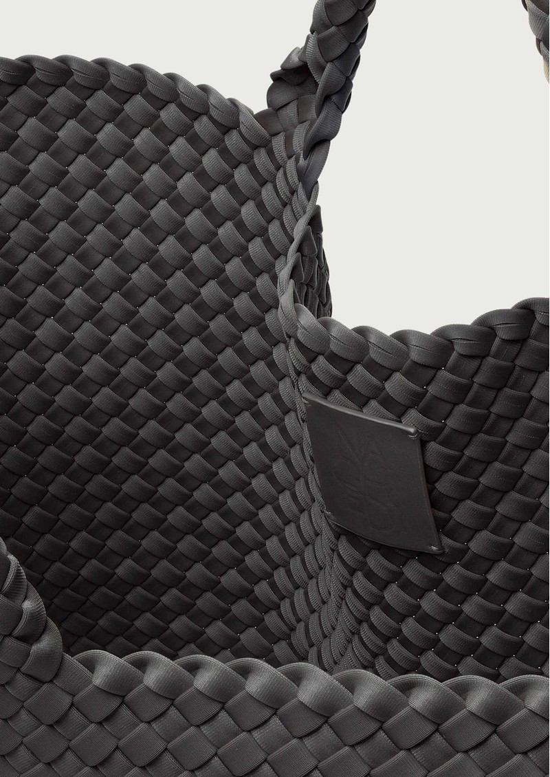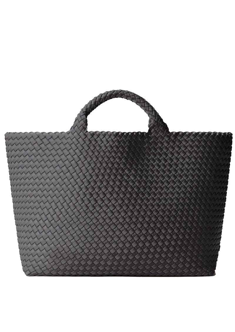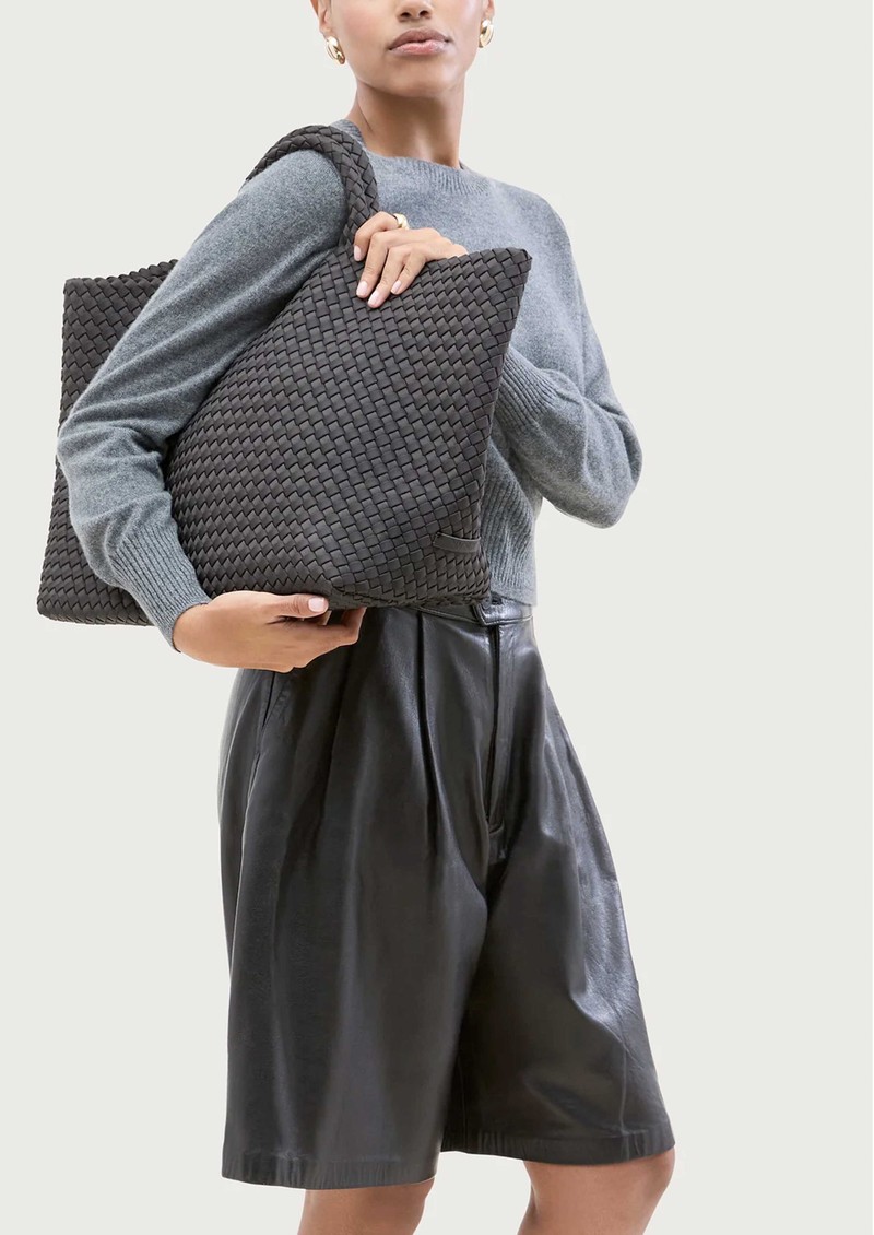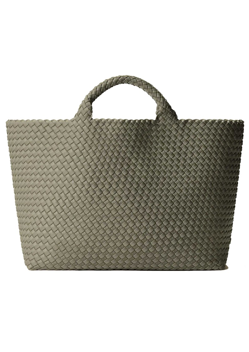 The Naghedi St. Barths Large Tote in olea, a soft neutral green, is beautifully handwoven from eco-conscious neoprene by skilled artisans. Lightweight yet durable, it’s the perfect travel companion, with flexible handles that naturally adjust for an effortless shoulder fit.