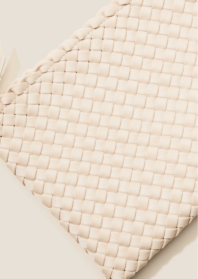 The Naghedi St. Barths Medium Tote is expertly crafted from sustainably sourced, handwoven neoprene in a soft ecru hue, offering a refined yet understated look. Designed with versatility in mind, this featherlight carryall transitions seamlessly from the office to the gym or weekend getaways. Its flexible handles gently give with wear, ensuring an easy, comfortable fit over the shoulder.