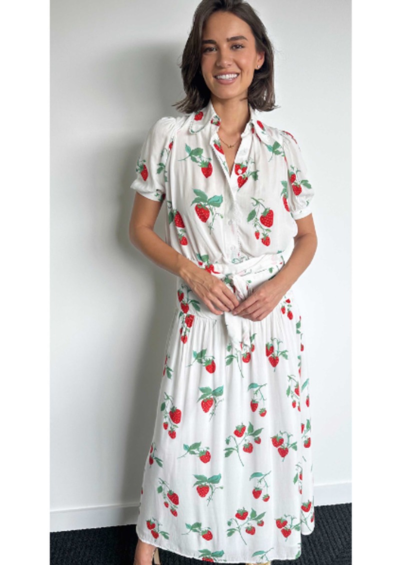 Pair your New Day Originals Paddington Blouse with Frame jeans, finishing the look with Bibi Lou heels and a Naghedi bag for a chic, effortless outfit.